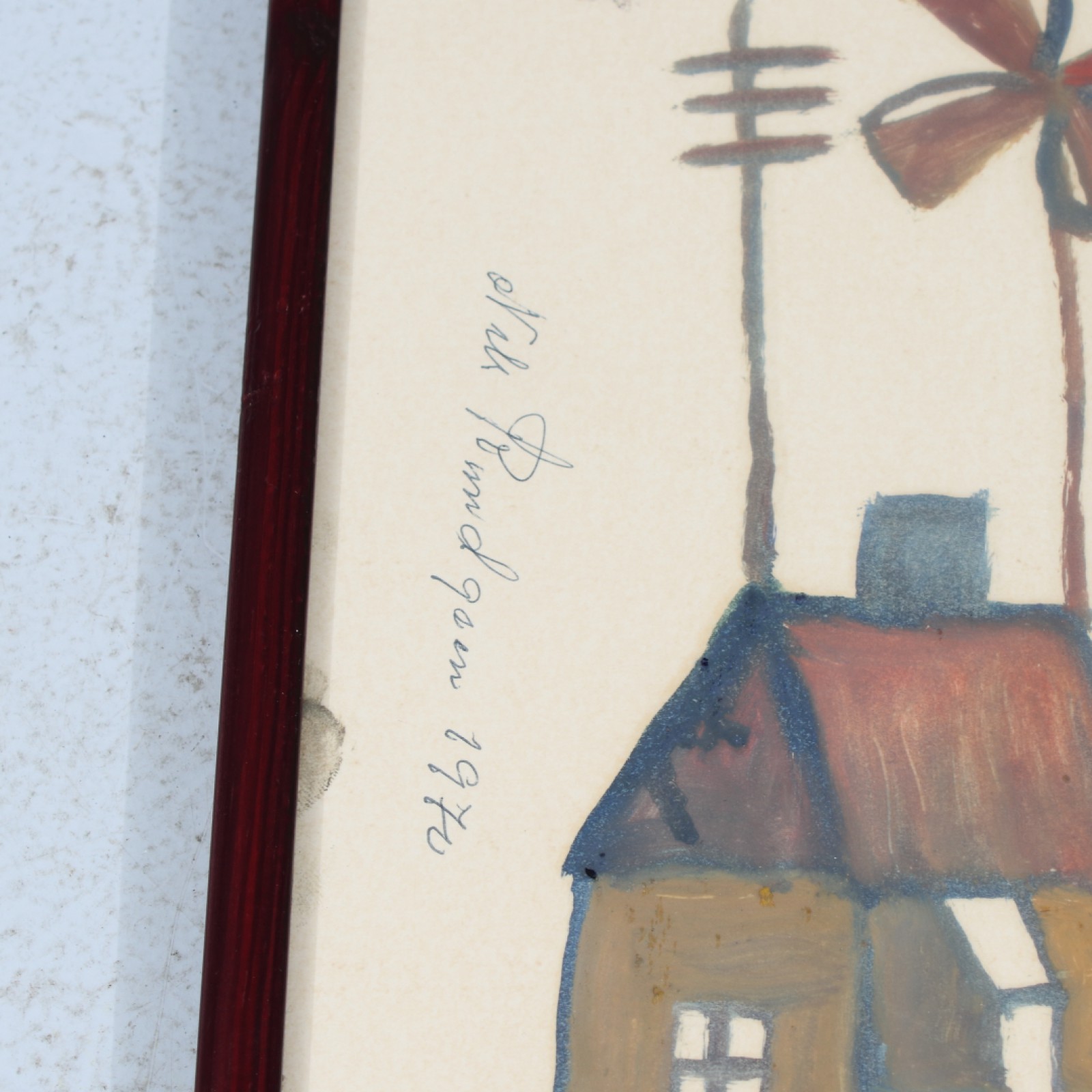 Blandteknik, "Naivistisk komposition", signerad samt daterad 1970, ram 36,5x39,5 cm. (vån3)