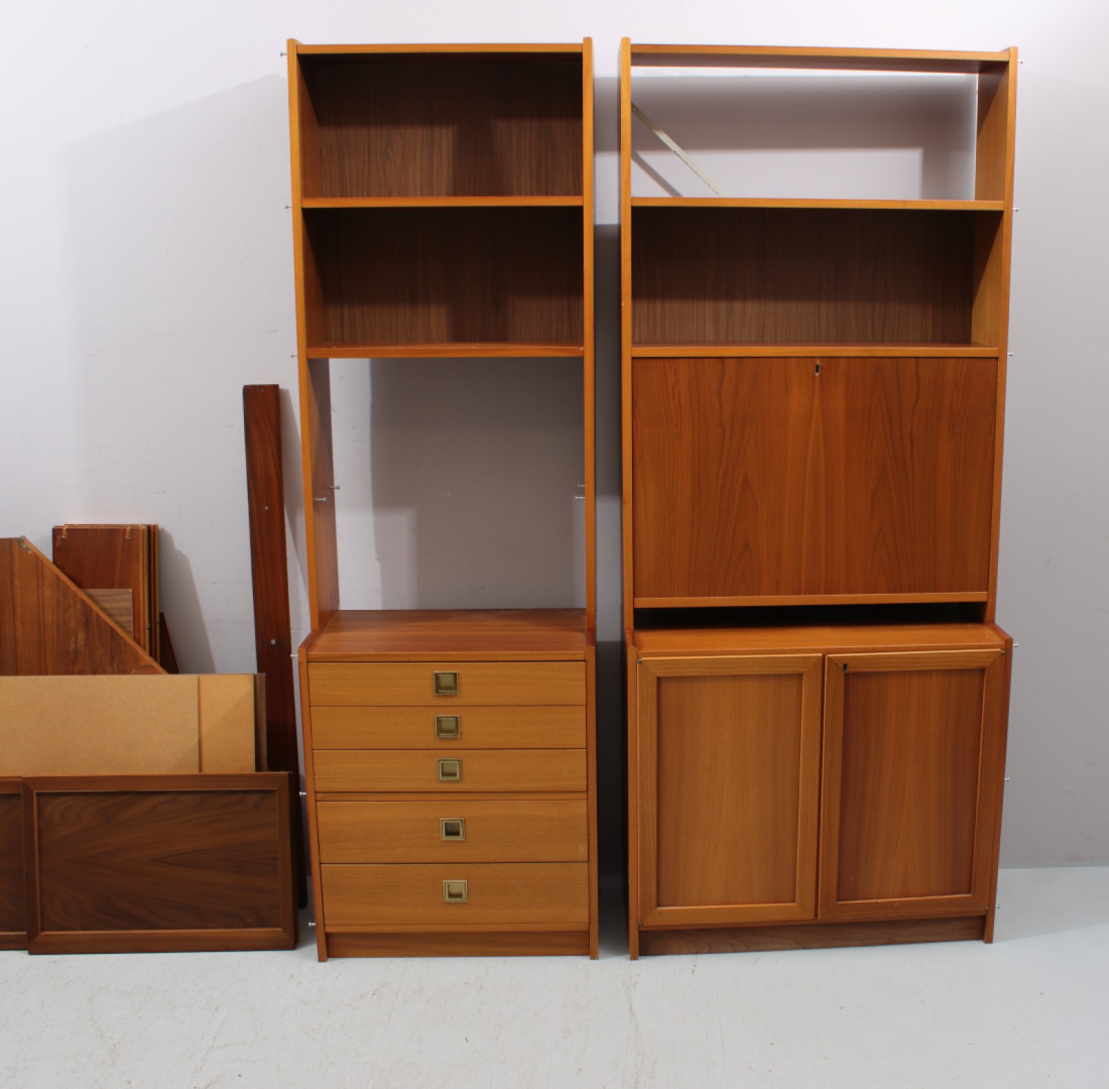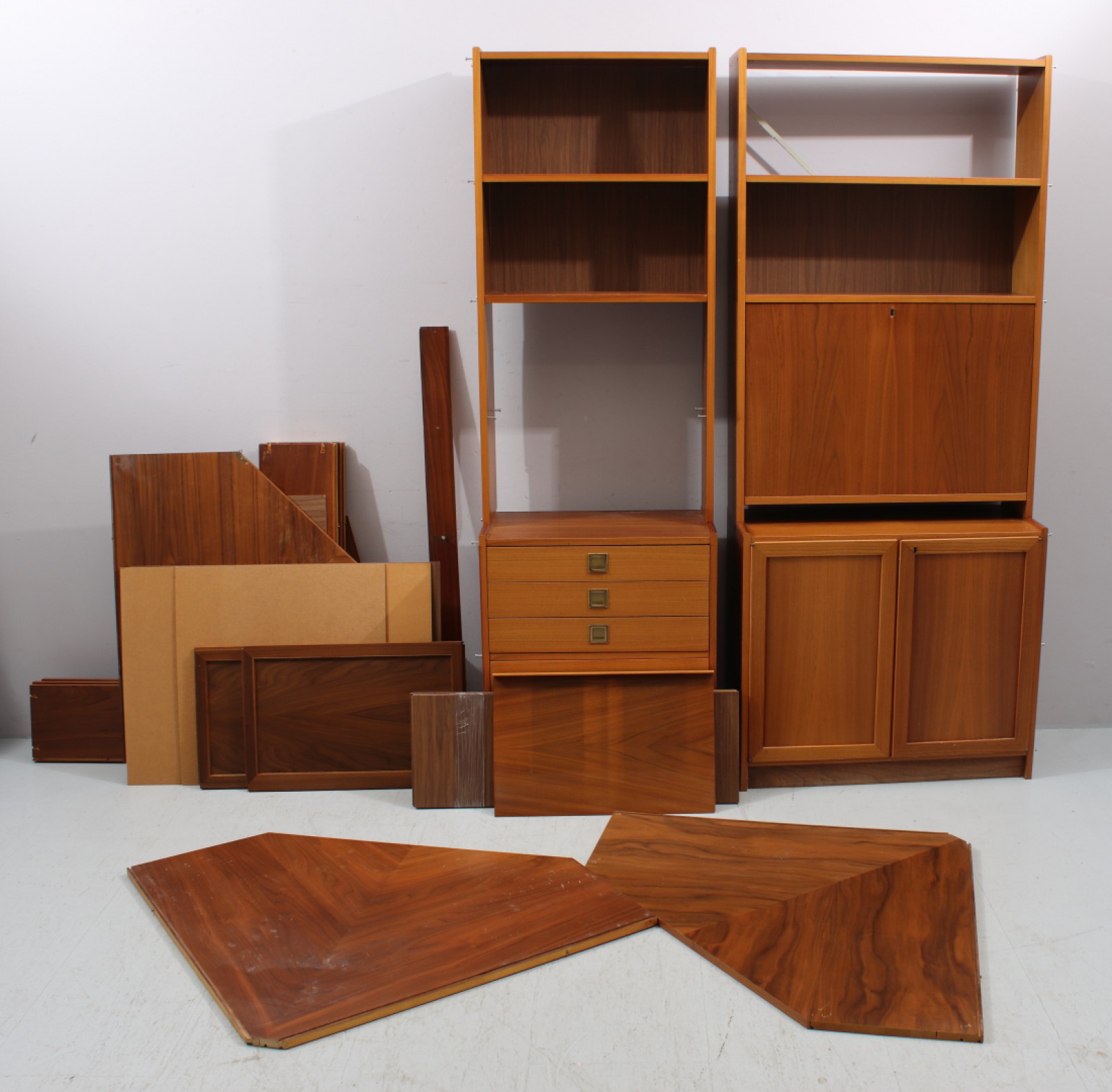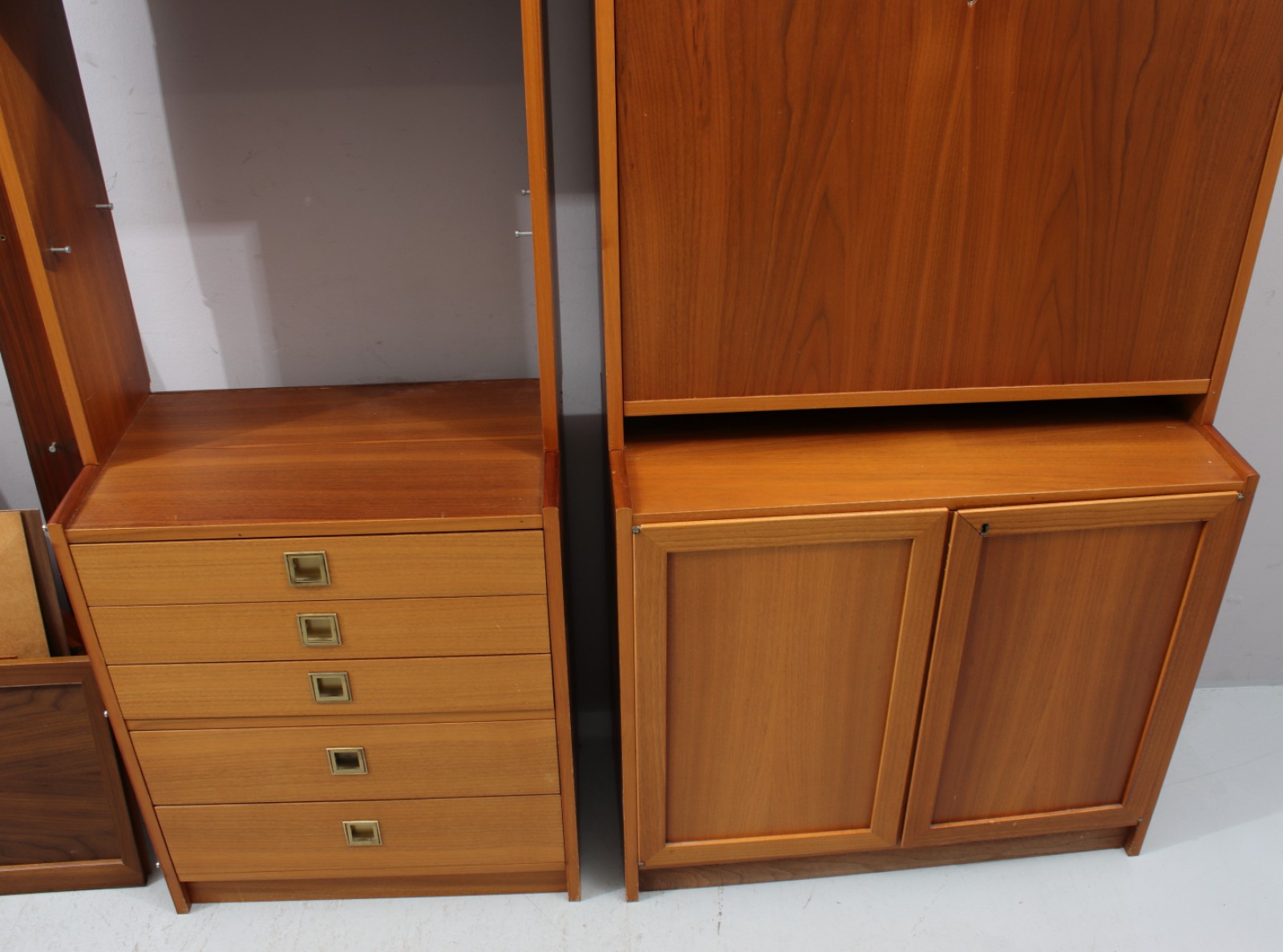 Fanerad med teak, 1970-tal, hörnmodell, åldersrelaterat slitage, omonterad i salen, H.190, B.150-170, Dj.35 cm. (vån1)