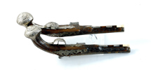English, late 18th century, locks signed Wilson, barrels with steel cut and gilded decorations, silver mounts, stocks with silver wire, 35 cm; upper vise jaws with screws later, one cock spur missing,small rust damages