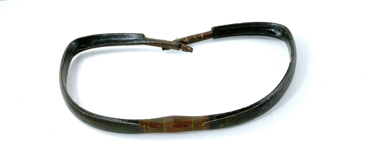 19th century, of wood, bone, and sinew, lacquered decorations, 43,5 x 26 cm