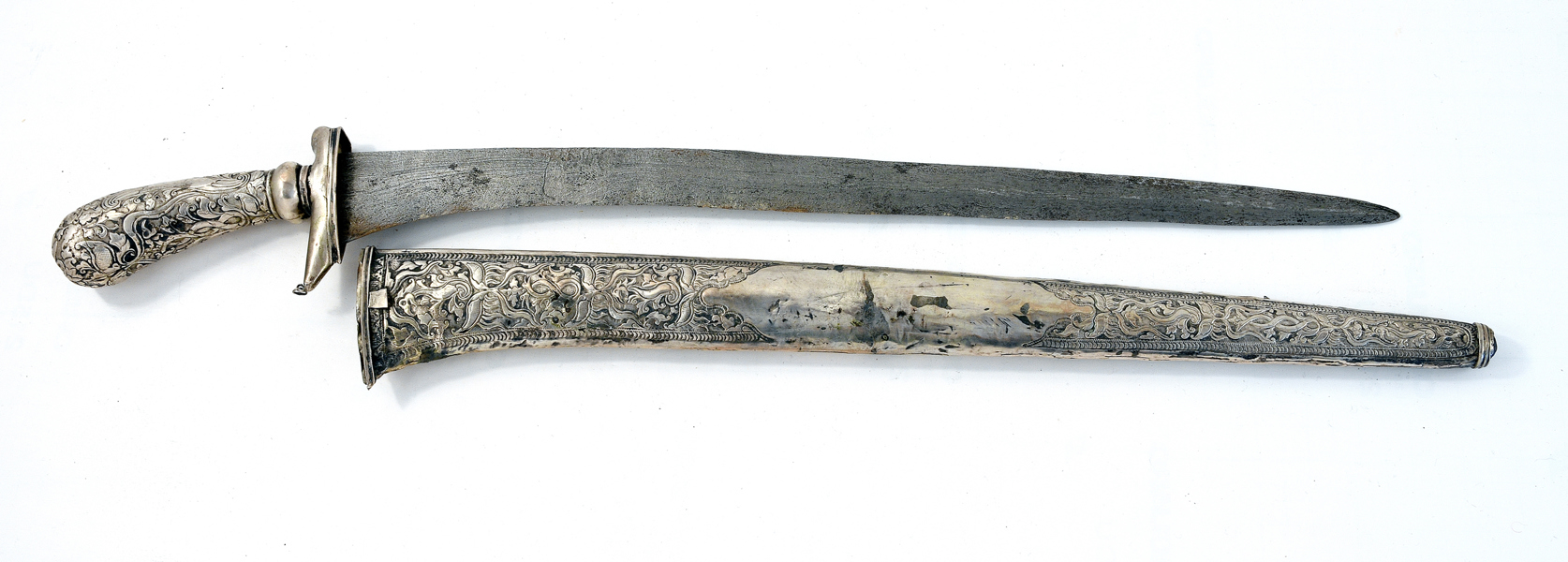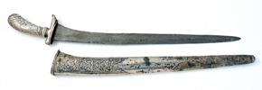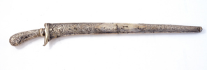 19th century, hilt and scabbard covered with silver, watered blade, 56 cm; scabbard with repairs