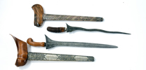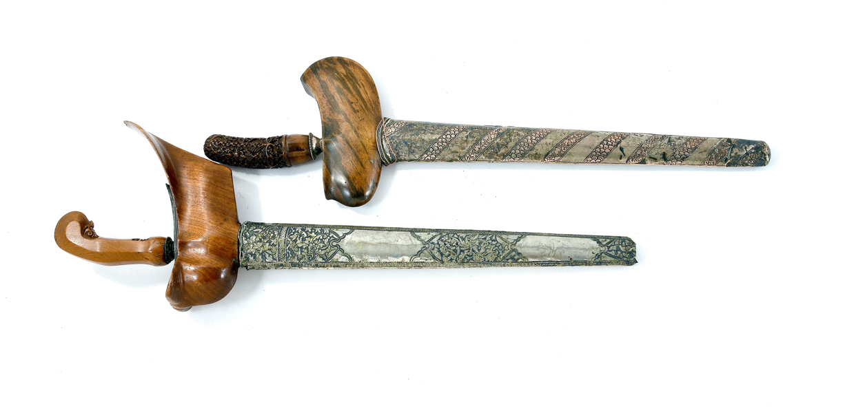 Indonesian, 19th century, watered blades, 47 cm, 44 cm; scabbard with damages
