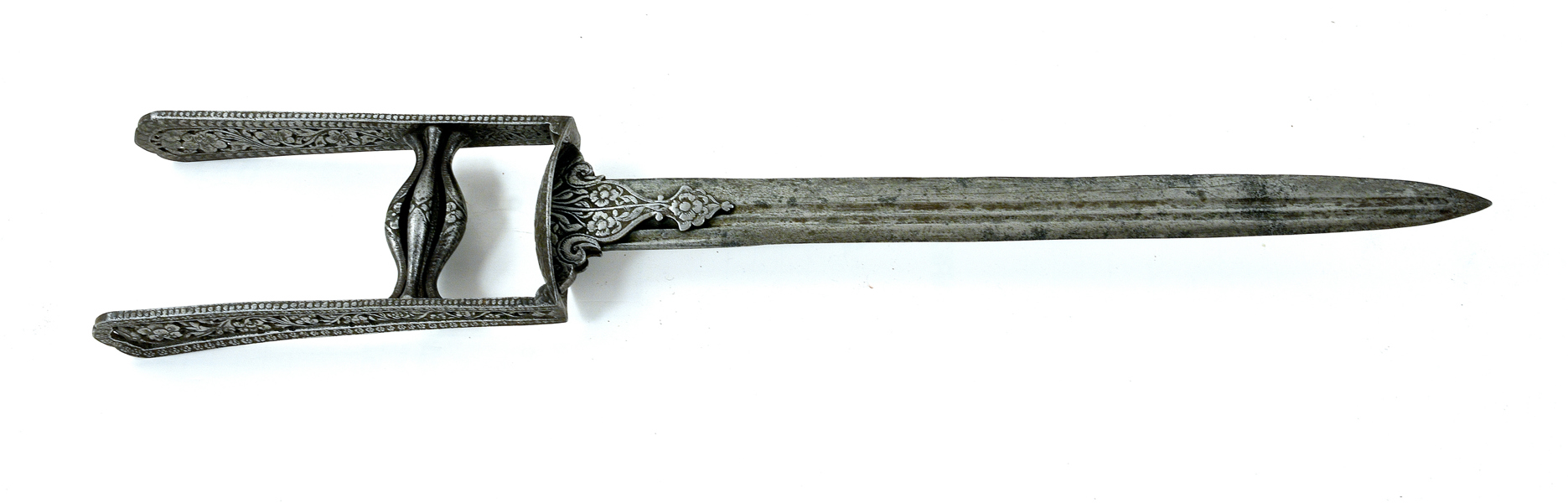 Indian, 18-19th century. Pirced hilt in iron with steelcut decorations, 49,5 cm