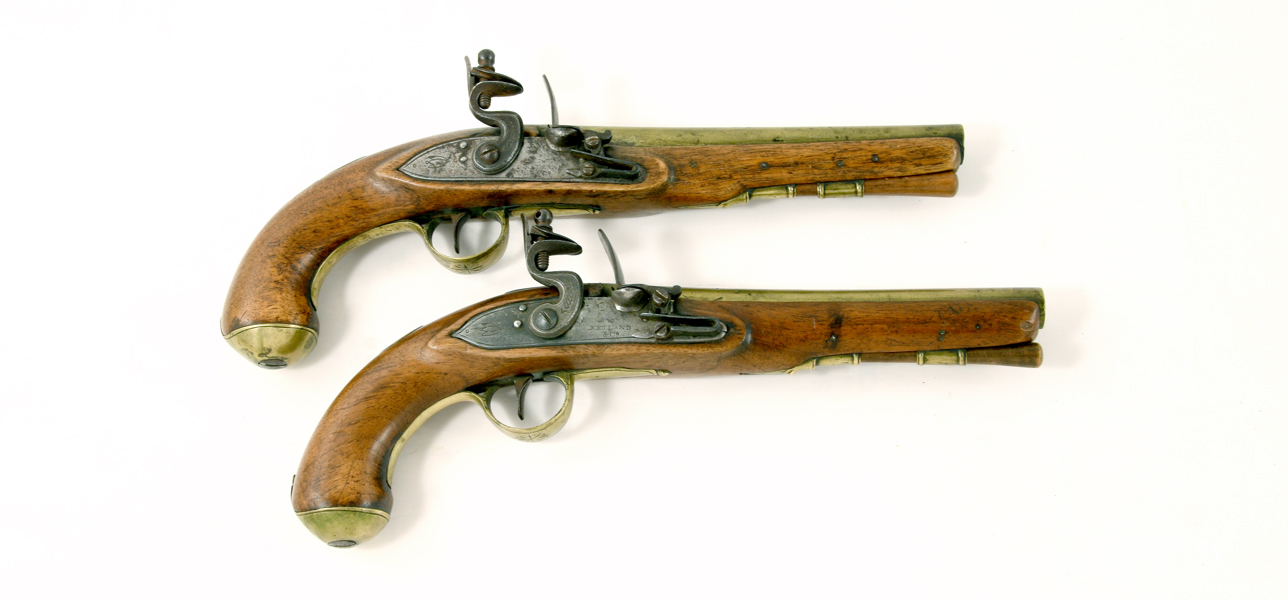 A PAIR OF ENGLISH NAVAL FLINTLOCK PISTOLS