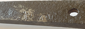 Tsuba in brass, mounted with old, signed blade, 94 cm, blade 65,5 cm; damages