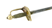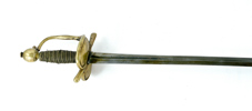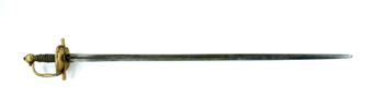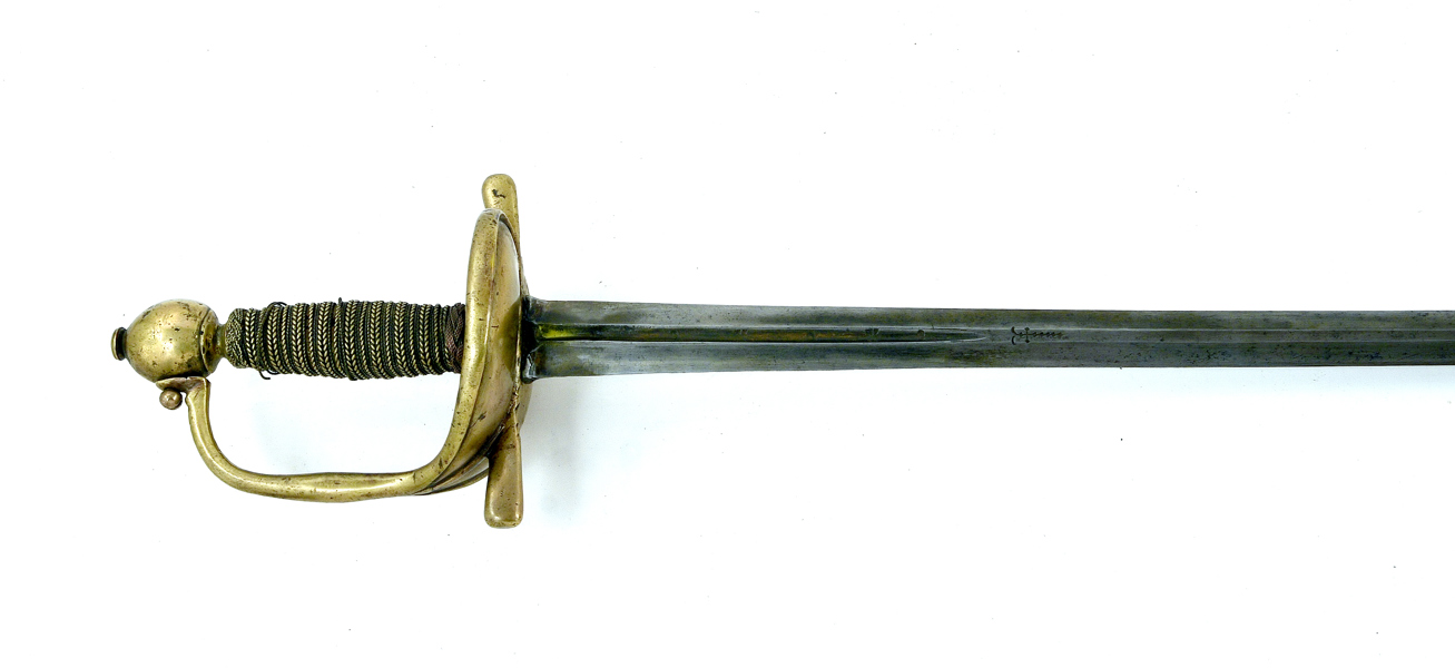 Svensk, tidigt 1700-tal, mässingsfäste, klinga med blodränna och dekorstämplar, 108 cm, klinga 92,5 cm; senare skruv, lindning med lös tråd