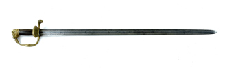 1700-talets första hälft, mässingsfäste, hornkavel, klinga med etsad dekor, krönt C 12 monogram (Carl XII) Carolus XII Rex Suecia, 84 cm, klinga 71 cm