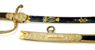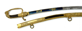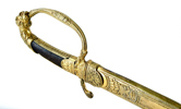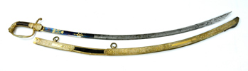 Svensk, 1810-tal, fäste och baljbeslag med förgylld dekor, klinga med etsad, förgylld och blånerad dekor, Carl XIII och kronprins Carl Johans monogram, 93 cm, klinga 78 cm; fästet något skevt, klinga med smärre skador, doppsko genomsliten