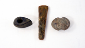 Stenålder, flintyxa med proveniens 1886, 17 cm, Yxa bergart, 8 cm, Klubba, bergart, 8,5 cm
