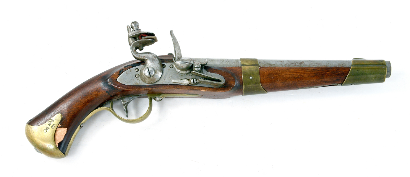 Svensk, tillbakaändrad från slaglås till flintlås, 41 cm: yttre låsdelar samt band 1900-tal