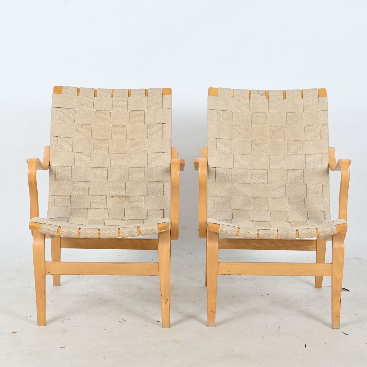 Bilder Bruno Mathsson, 2 fåtöljer "Eva", låg, Dux