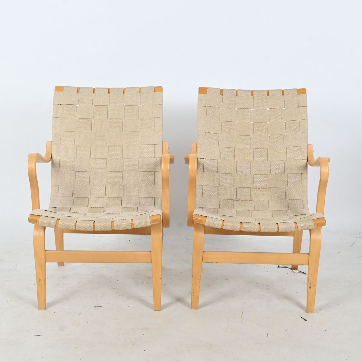 Bilder Bruno Mathsson, 2 fåtöljer "Eva", låg, Dux