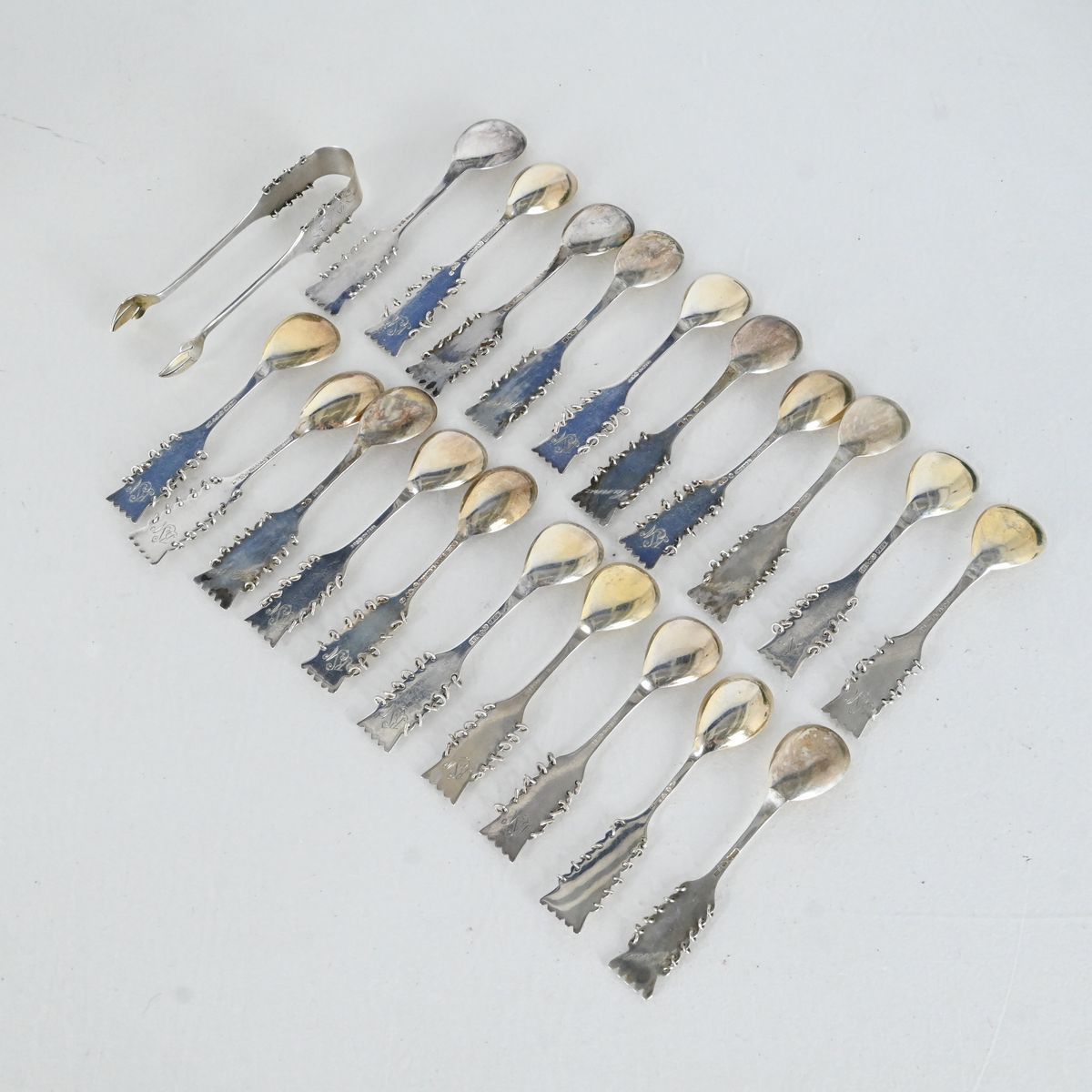 20 kaffeskedar och sockertång, silver