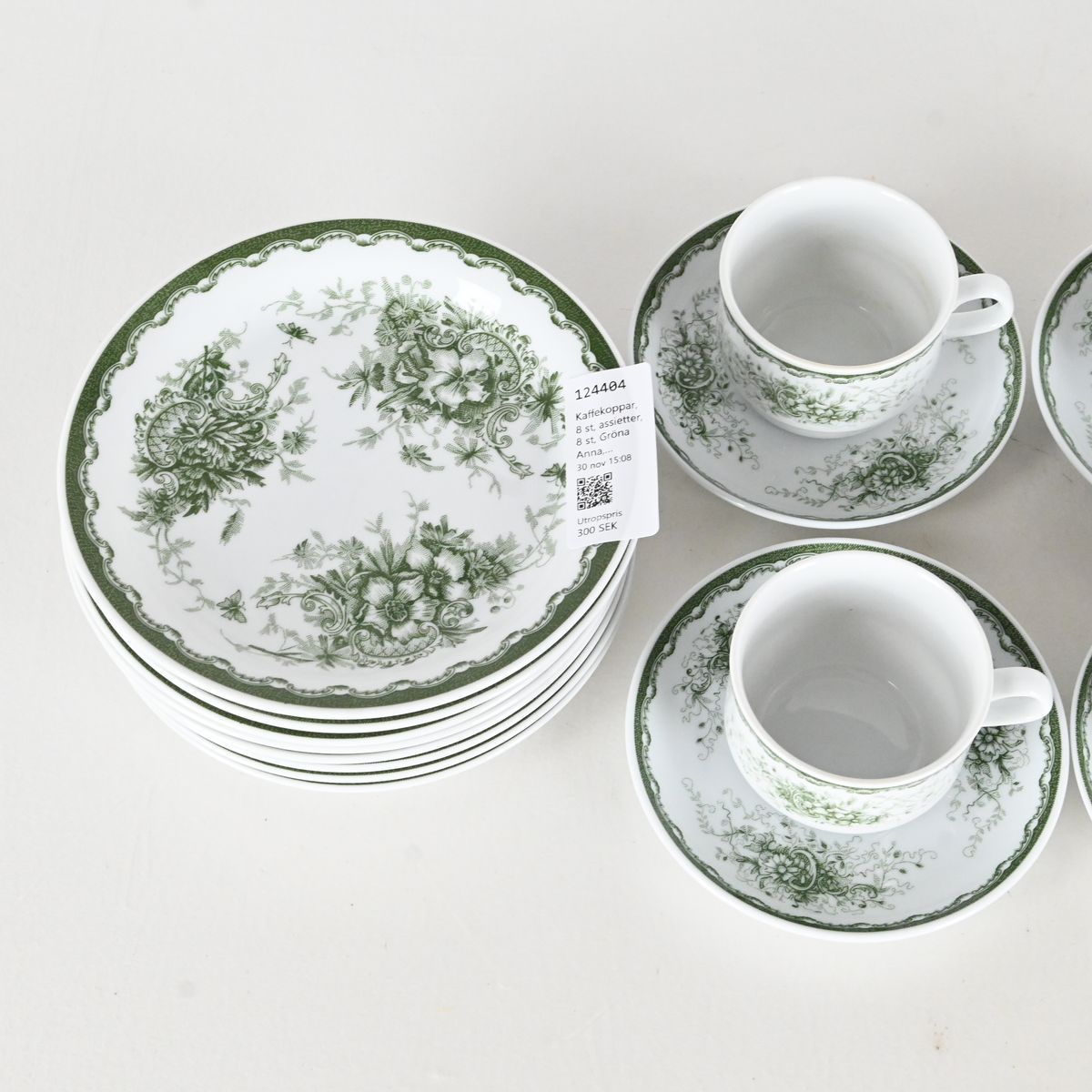 Kaffekoppar, 8 st, assietter, 8 st, Gröna Anna, Rörstrand