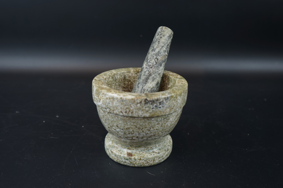 Mortel med stöt, kolmårdsmarmor, 1900-tal.
