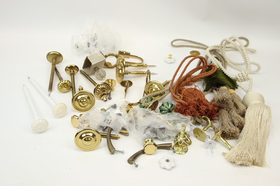 Bilder Gardinhållare, tofsar m.m, ett parti.