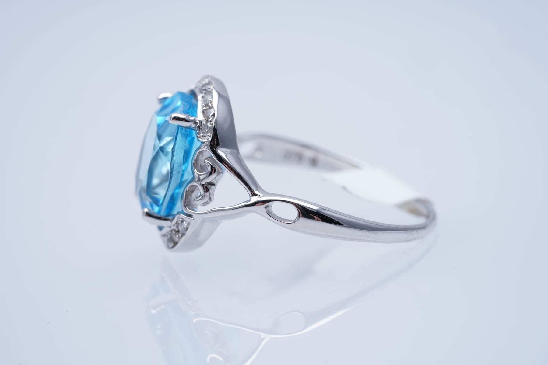 Bilder RING white GOLD 375 / 1000 blue TOPAZE ( 3,68 ) ( DIAMONDS ( 0,06 ), nro 10698