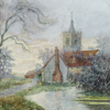 Albert Kinsley, (1852-1945), England, kyrka vid bäck, akvarell, signerad