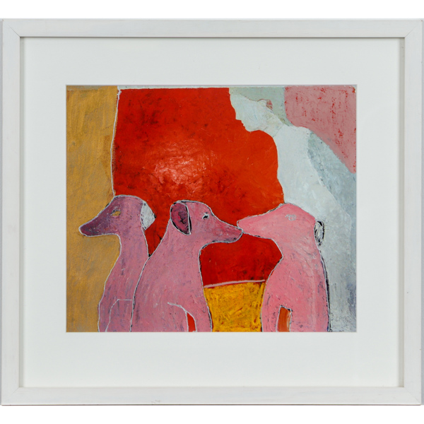 Camilla Pyk, Trio i hundar, blandteknik på grafisk botten, signerad