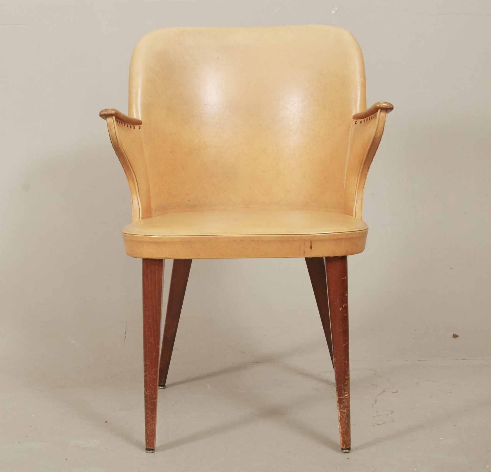 Cognacsfärgat konstläder med nitar. Bruksslitage