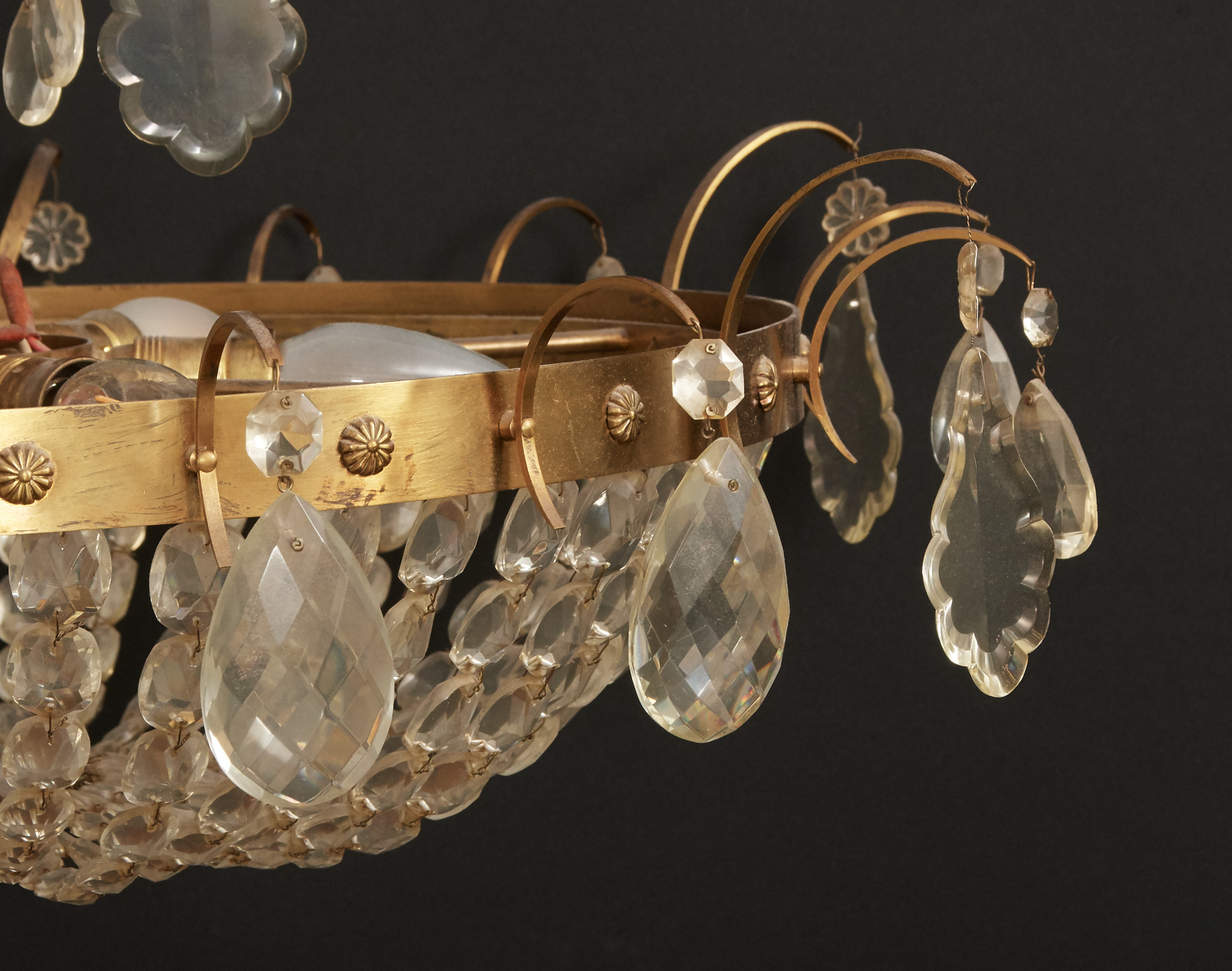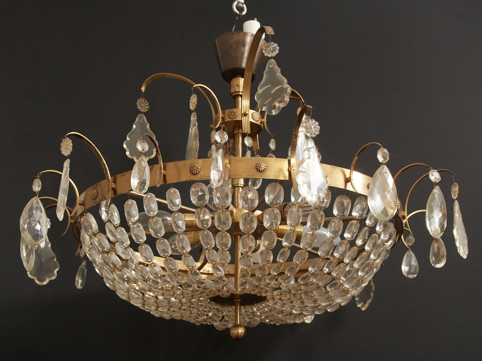 Diameter 50 cm , höjd ca 45. 6 ljuskällor. Ej funktionstestad.