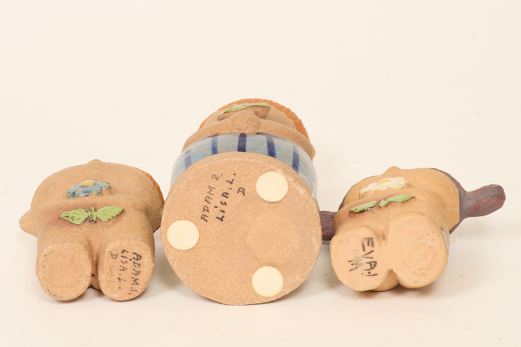 3 st, "Adam och Eva", höjd 11 cm, samt en "Adam 2", höjd 20 cm, smärre bruksslitage.