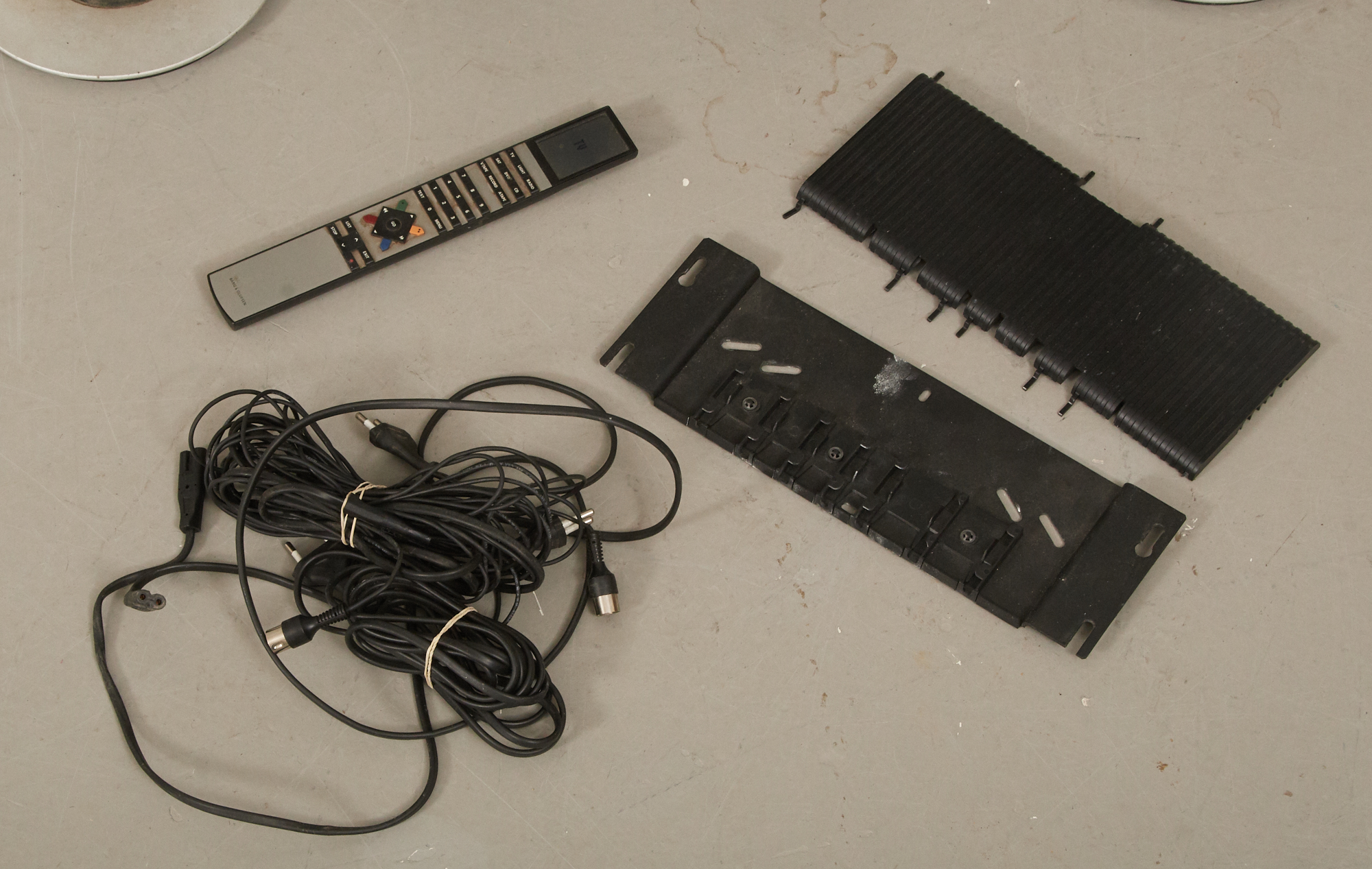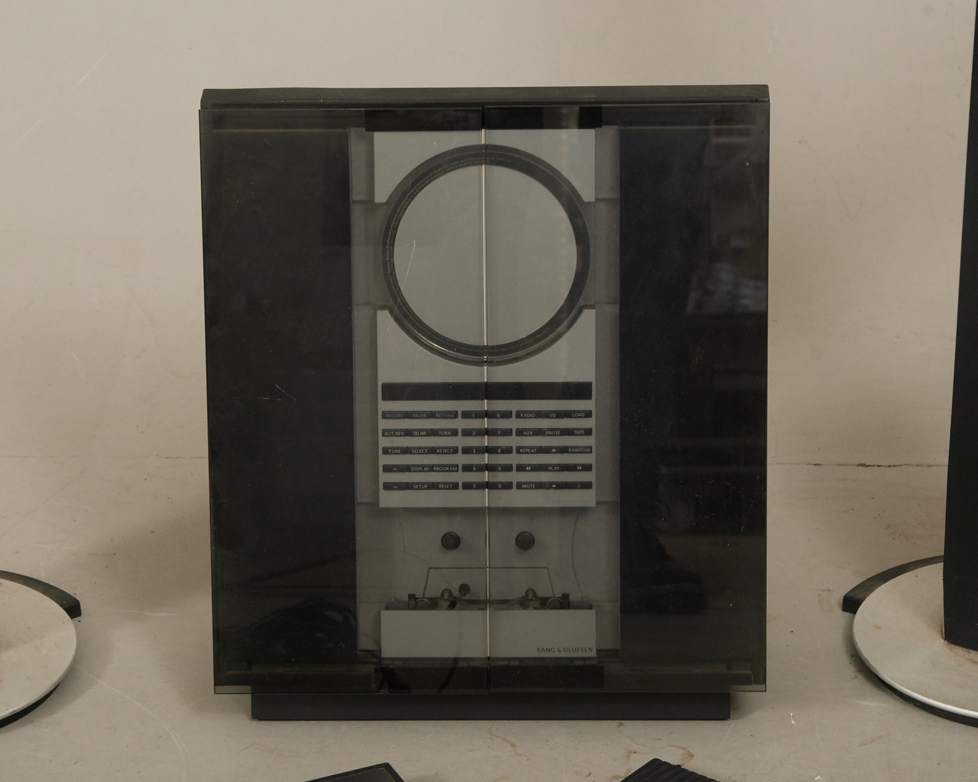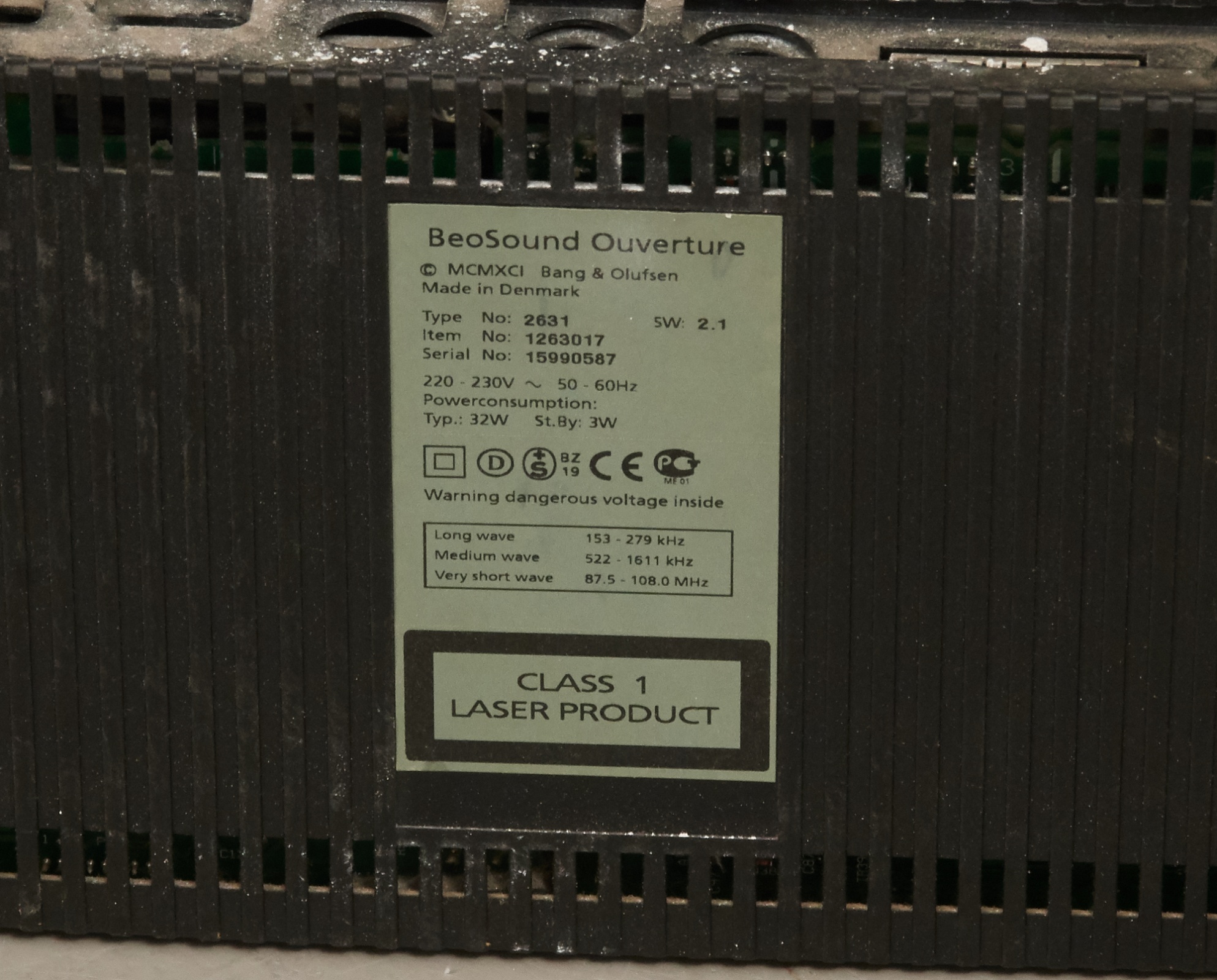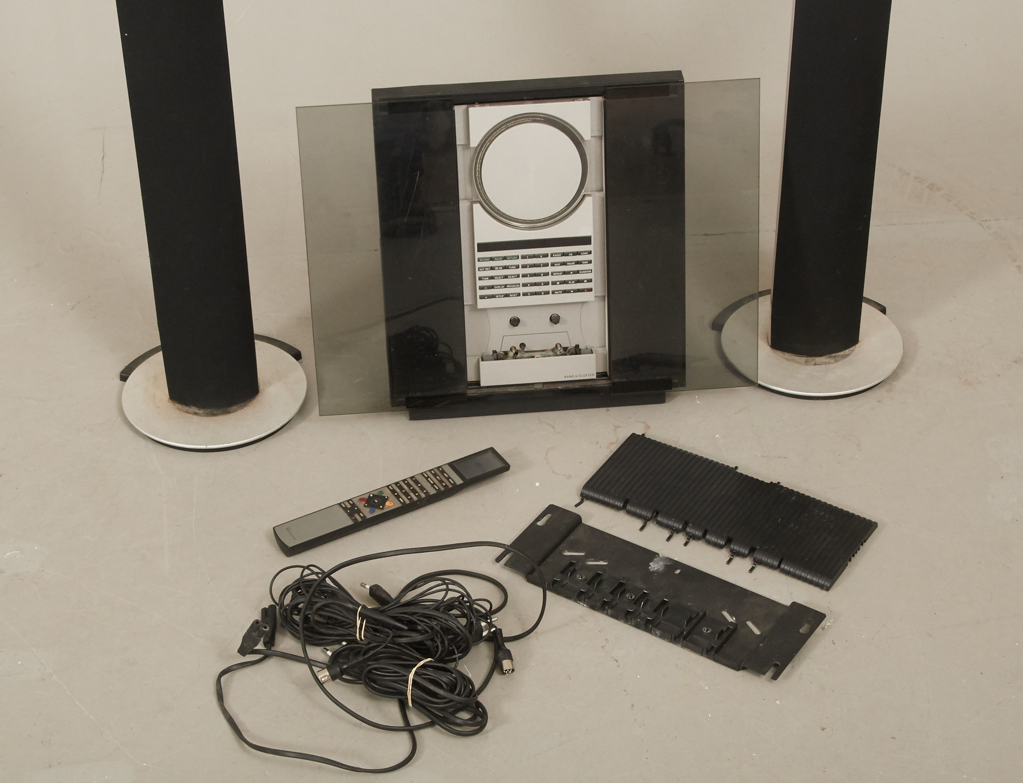 BeoSound Overture, samt högtalare Beolab 600, fjärrkontroll medföljer. Bruksslitage, ej genomgånget eller funktionstestat.