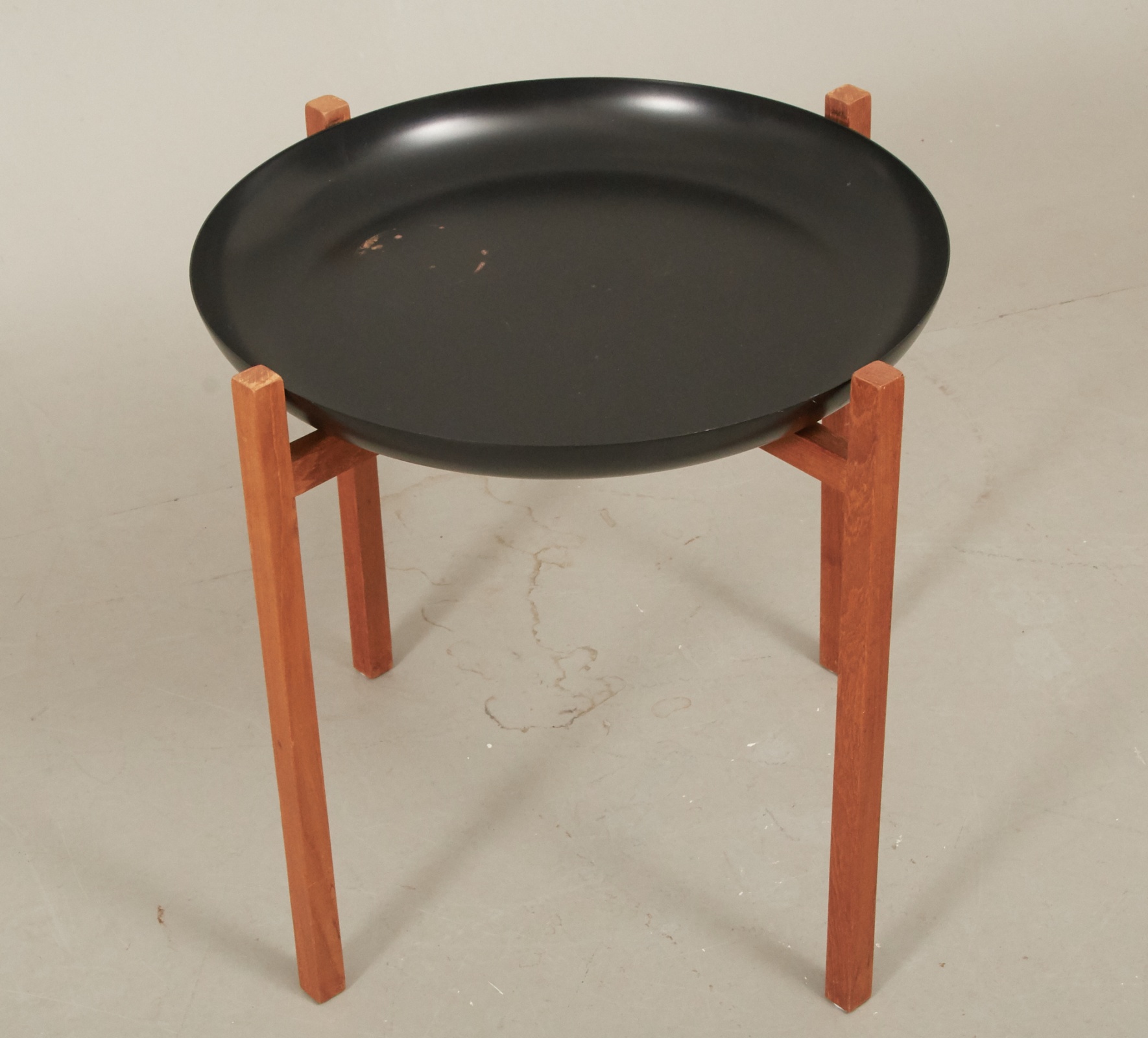 Stomme i ek, löstagbar bricka i svartlackerad metall, höjd 53 cm, höjd 58 cm, bruksslitage, bricka med skavmärke.