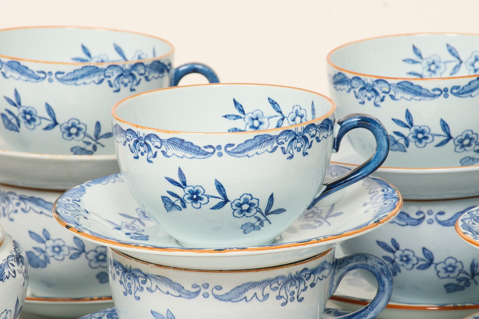 12 koppar med fat, kaffekanna, sockerskål, mjölkkanna, bruksslitage.