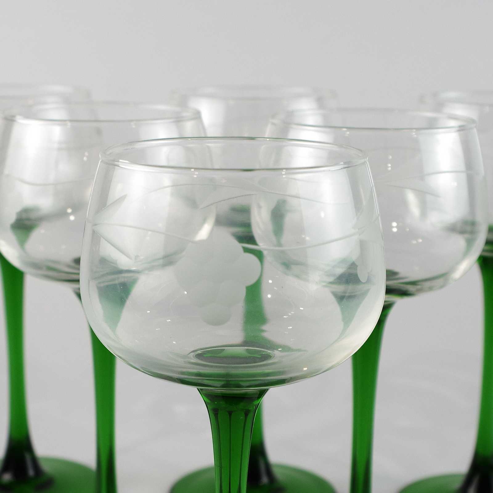VINGLAS 6st äldre, slipad dekor. H:16cm D:6cm.