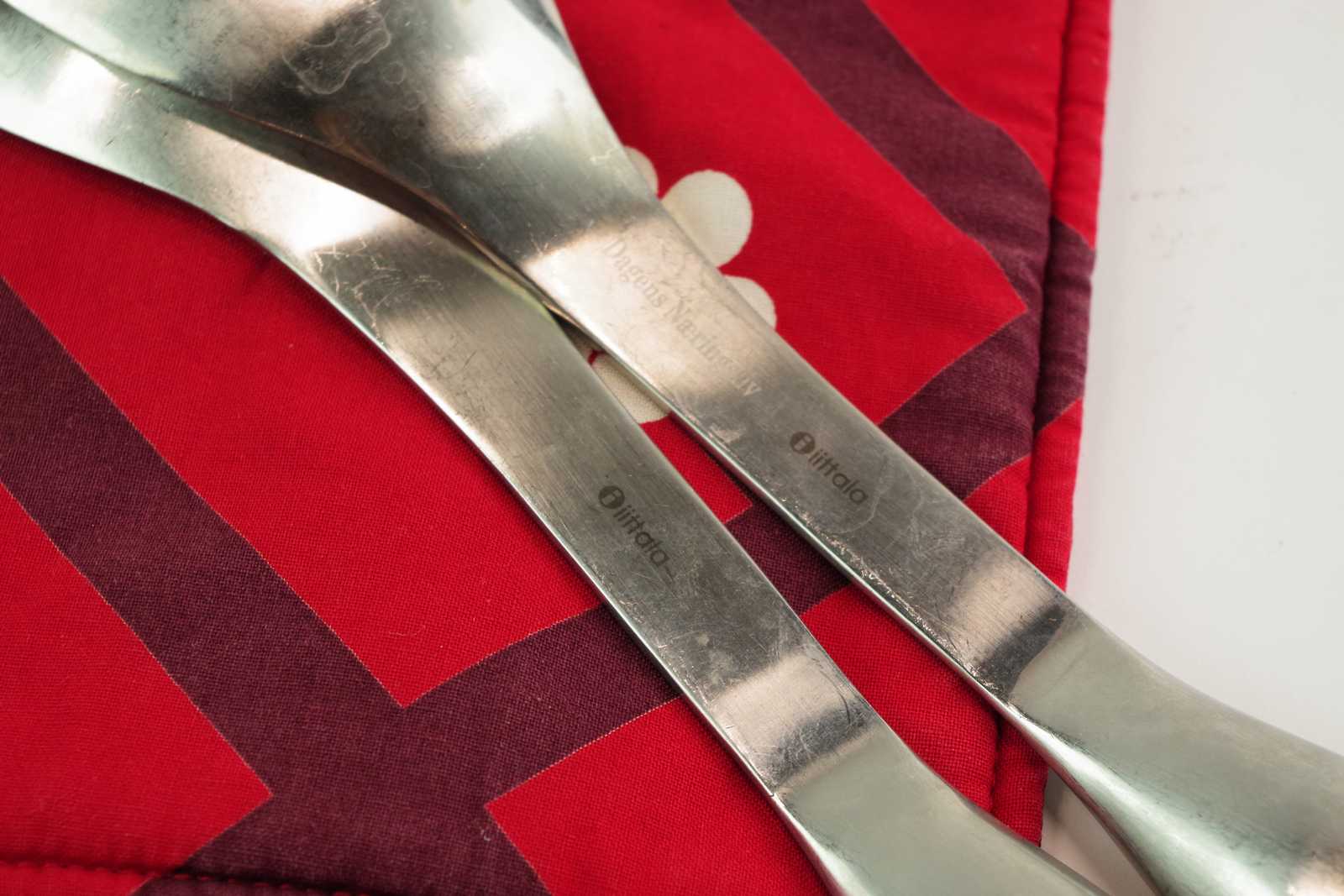 LJUSSTAKE Muuto, SALLADSBESTICK Iittala & GRYTLAPPAR Marimekko