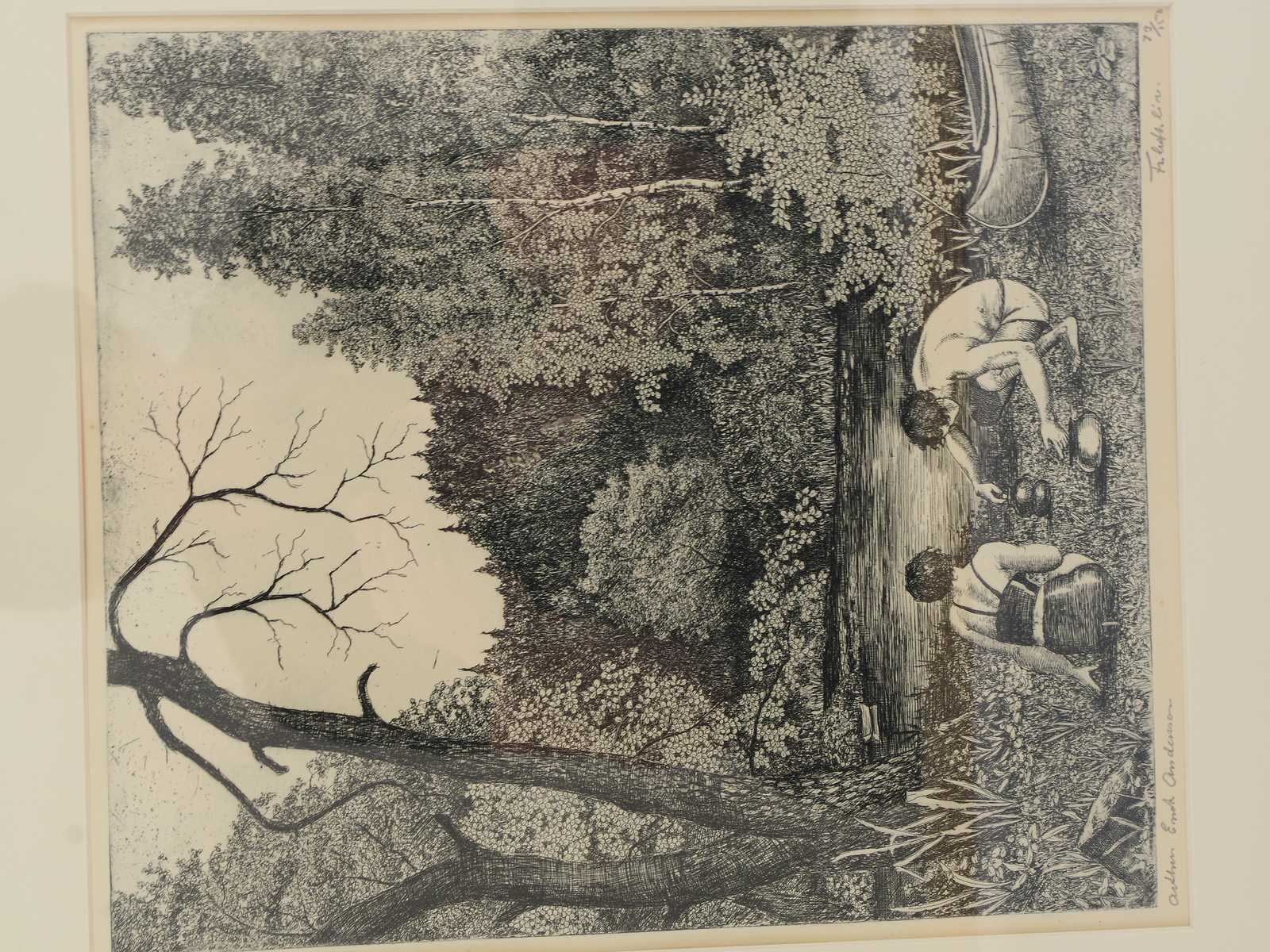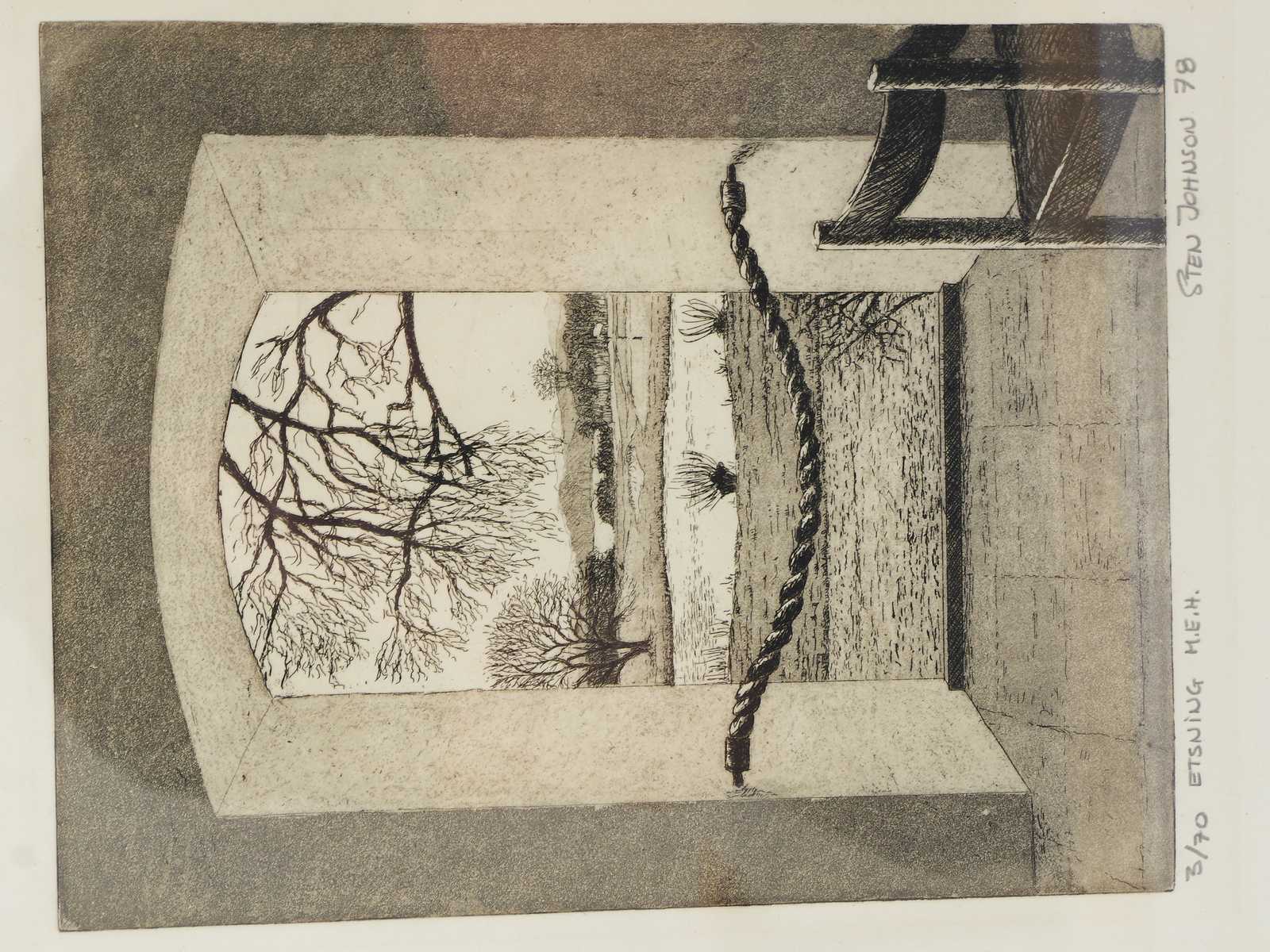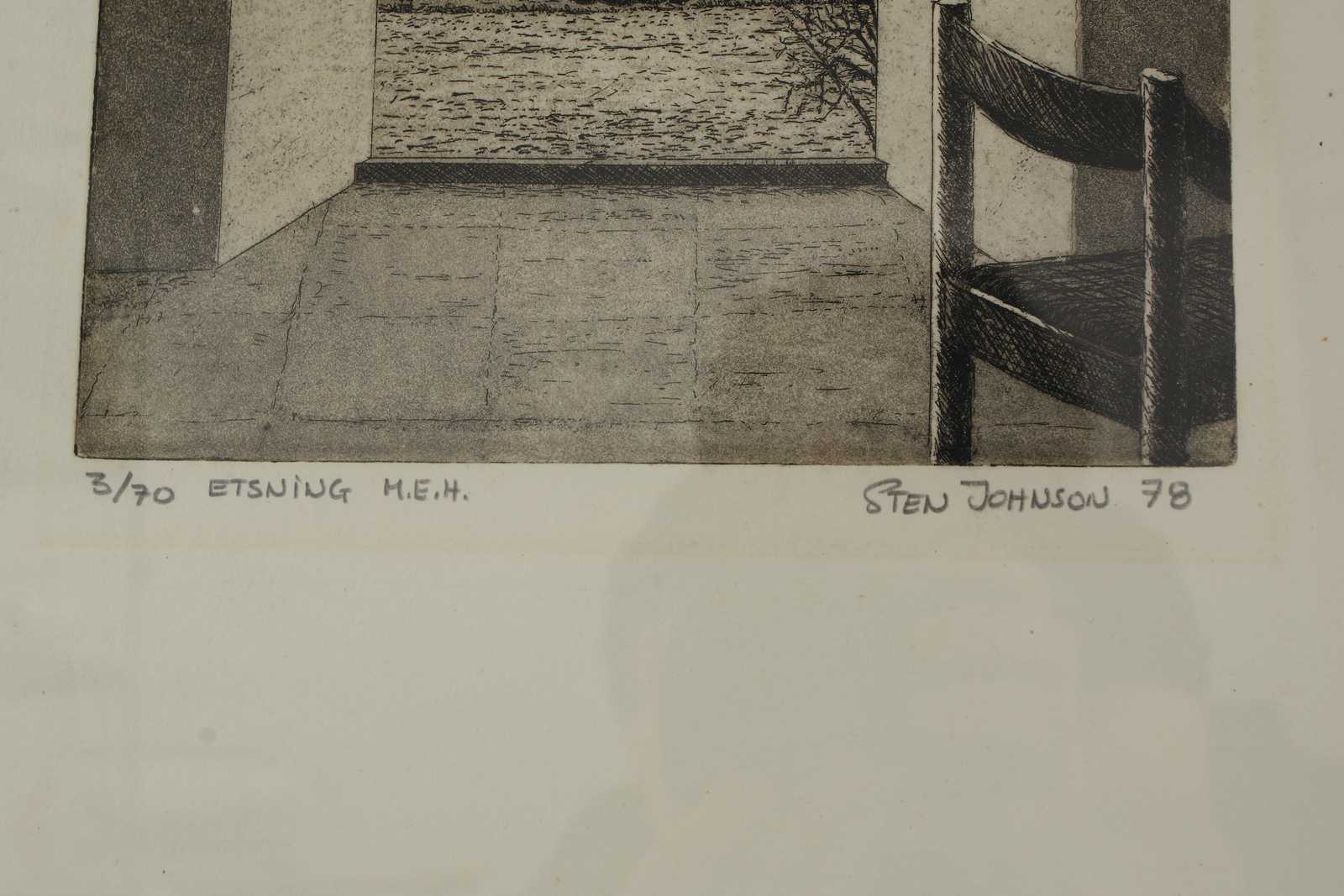 Auktioner Konst & Grafik TAVLOR Arthur Enok Andersson, etsning, signerad & numrerad 73/150. & Sten Johnson, signerad & numrerad 3/70. 38x44cm rammått