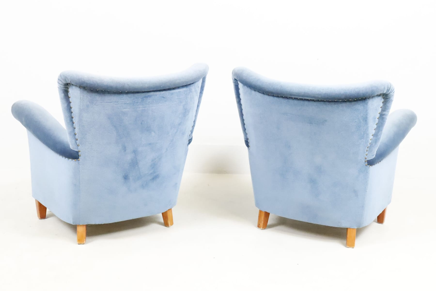 Fåtöljer, 1 par, blå plysch