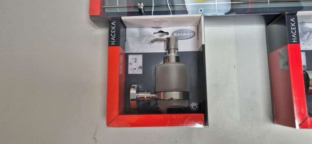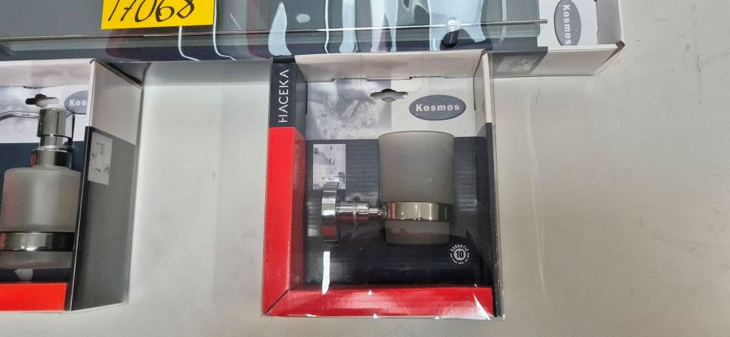 2 st handdukshållare, 1 st toaborste, 1 st hylla, 1 st tvålpump, 2 st glas