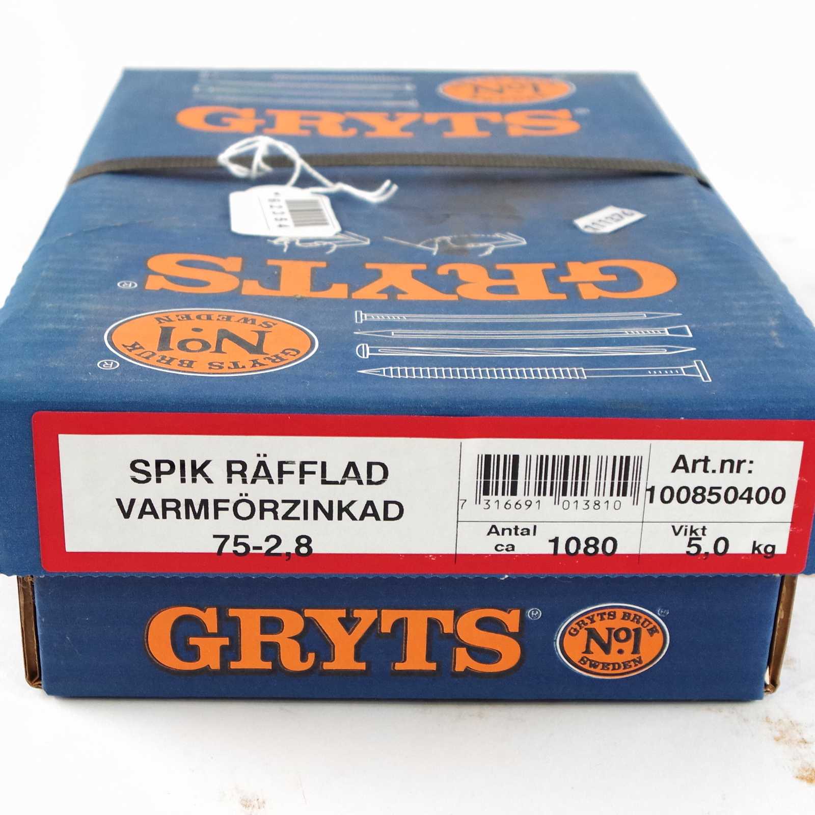 Bilder SPIKLÅDA oöppnad. Gryts Bruk No 1. Spik räfflad vamrförzinkad 75-2,8.