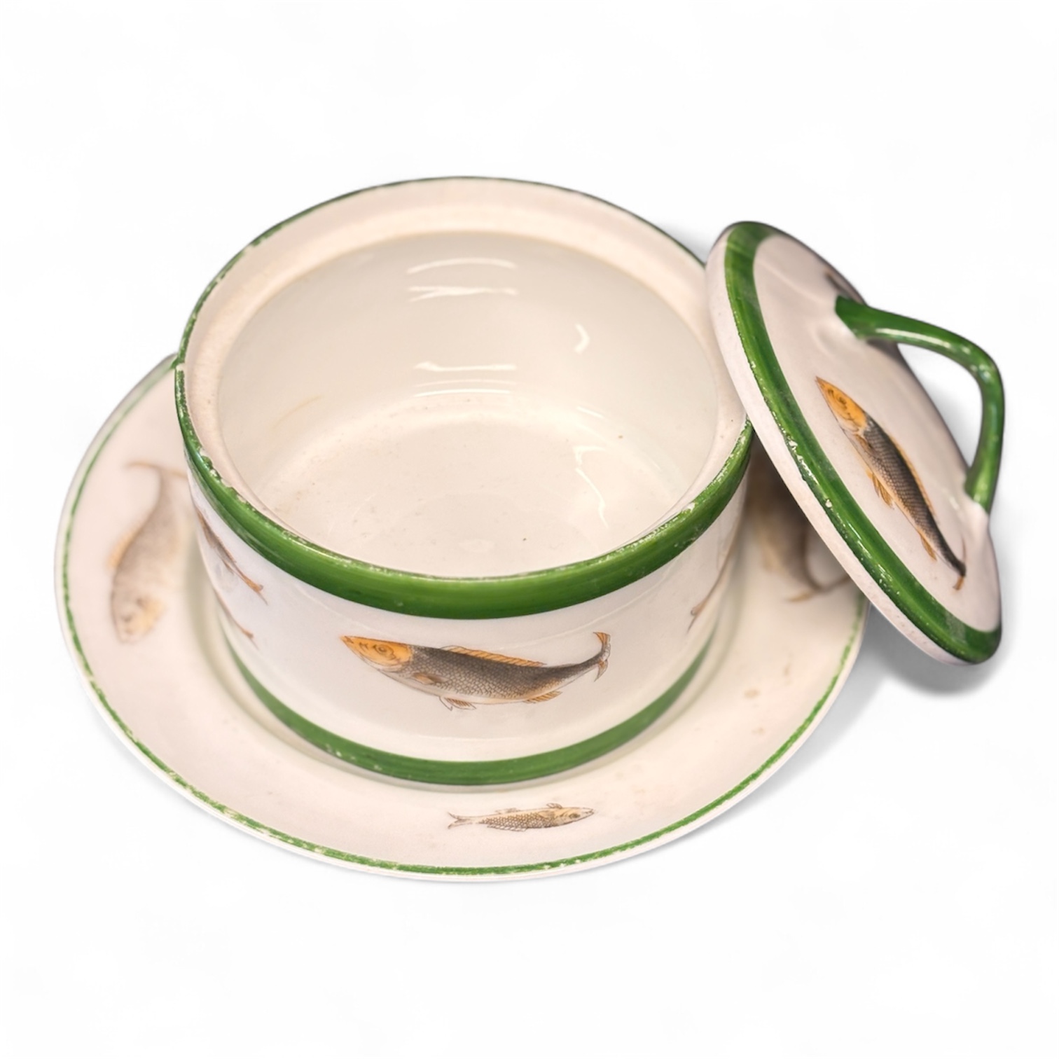 Bilder Beyer & Bock smörkupa / smörask i porslin med fiskmotiv, tidigt 1900-tal