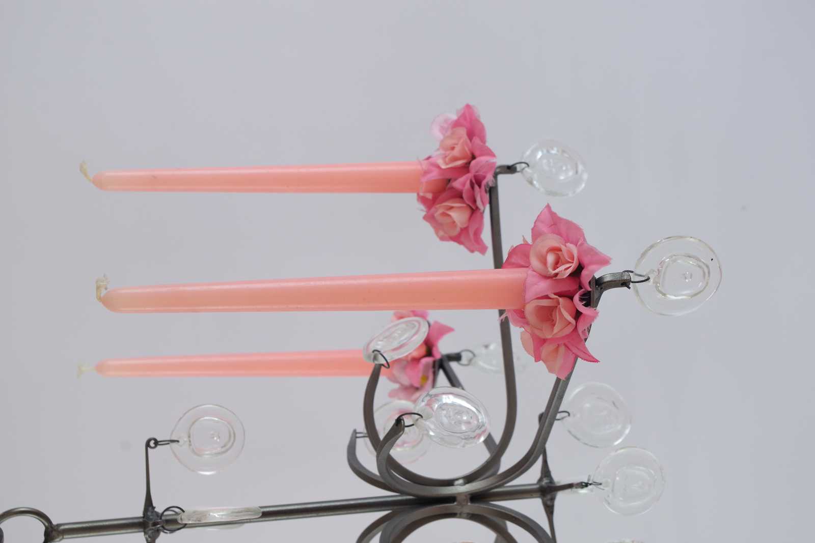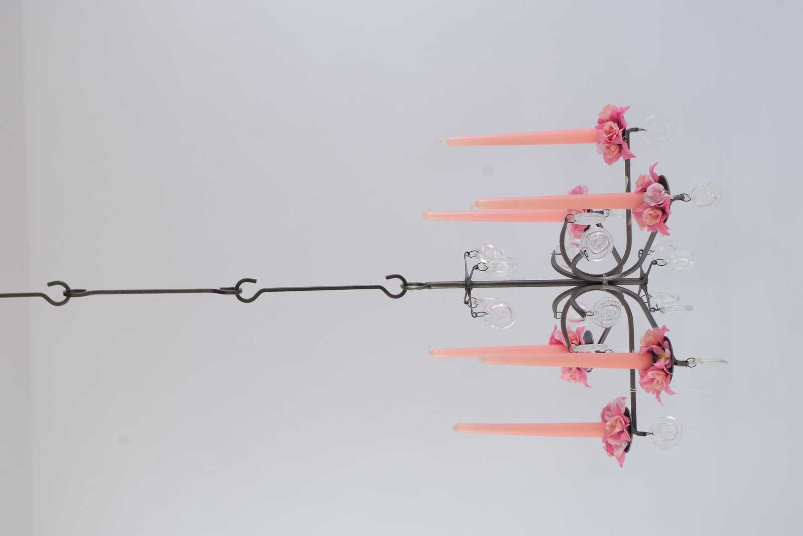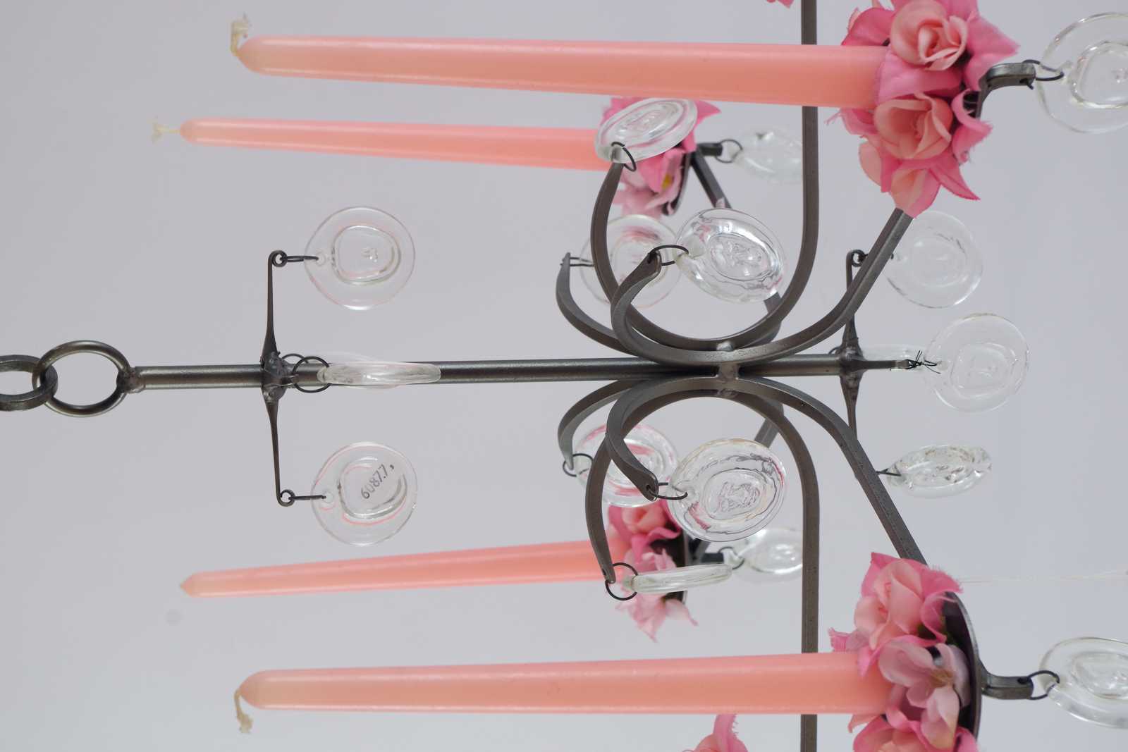 Bilder LJUSKRONA Erik Höglund, Boda, i smide & glas. D:48cm H:35cm + upphängningskrokar 3st 21cm/st