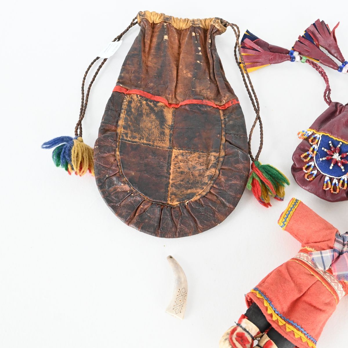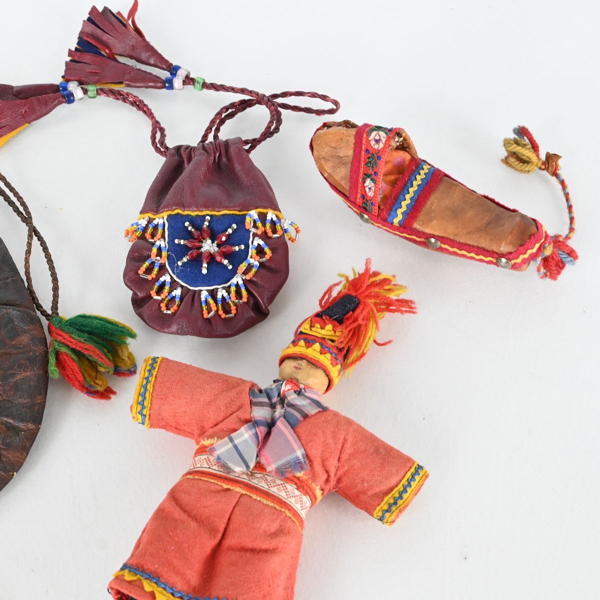 Bilder Parti sameslöjd, 2 skinnpåsar, docka, miniatyrkomse hänge