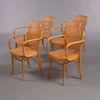 Formgivna av Josef Hoffman på 1920-talet, dessa är tillverkade på 1960-talet, böjträ, sits samt ryggbricka i rotting, sitthöjd 46 cm