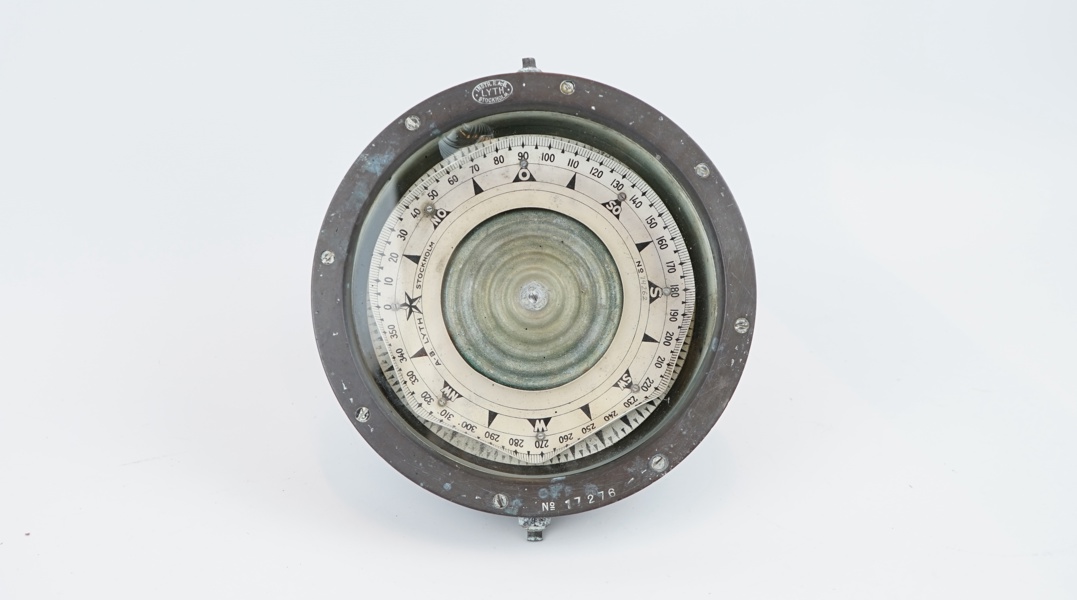 Skeppskompass, metall/glas, Lyth, Stockholm.