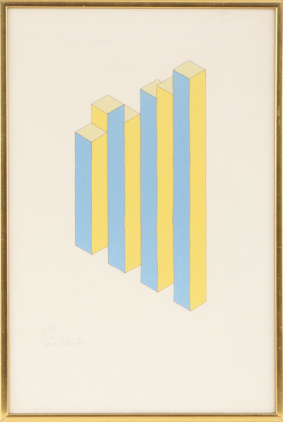 Färglitografi, komposition. Signerat och numrerat. Inramat.