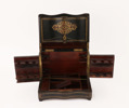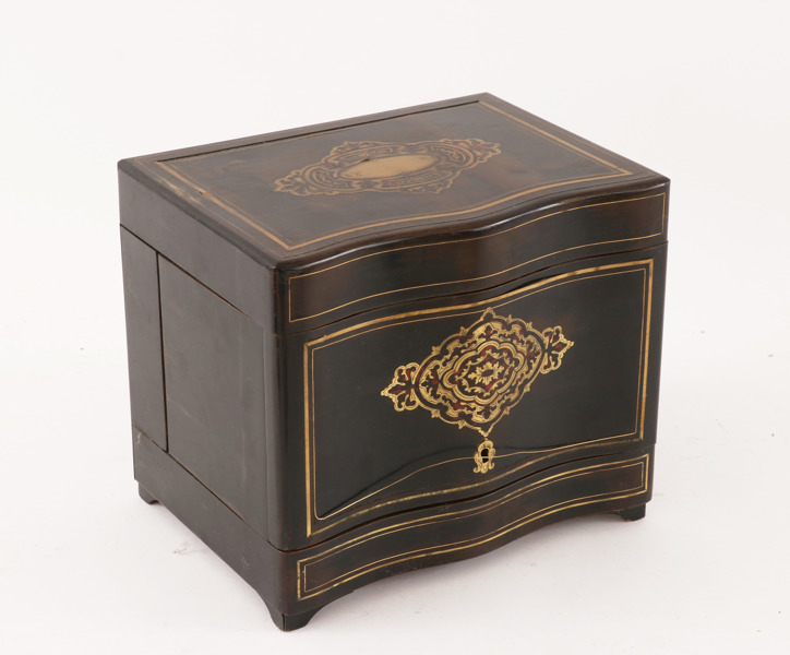 Fanerat. Med inläggningar av mässing. Dubbla dörrar.