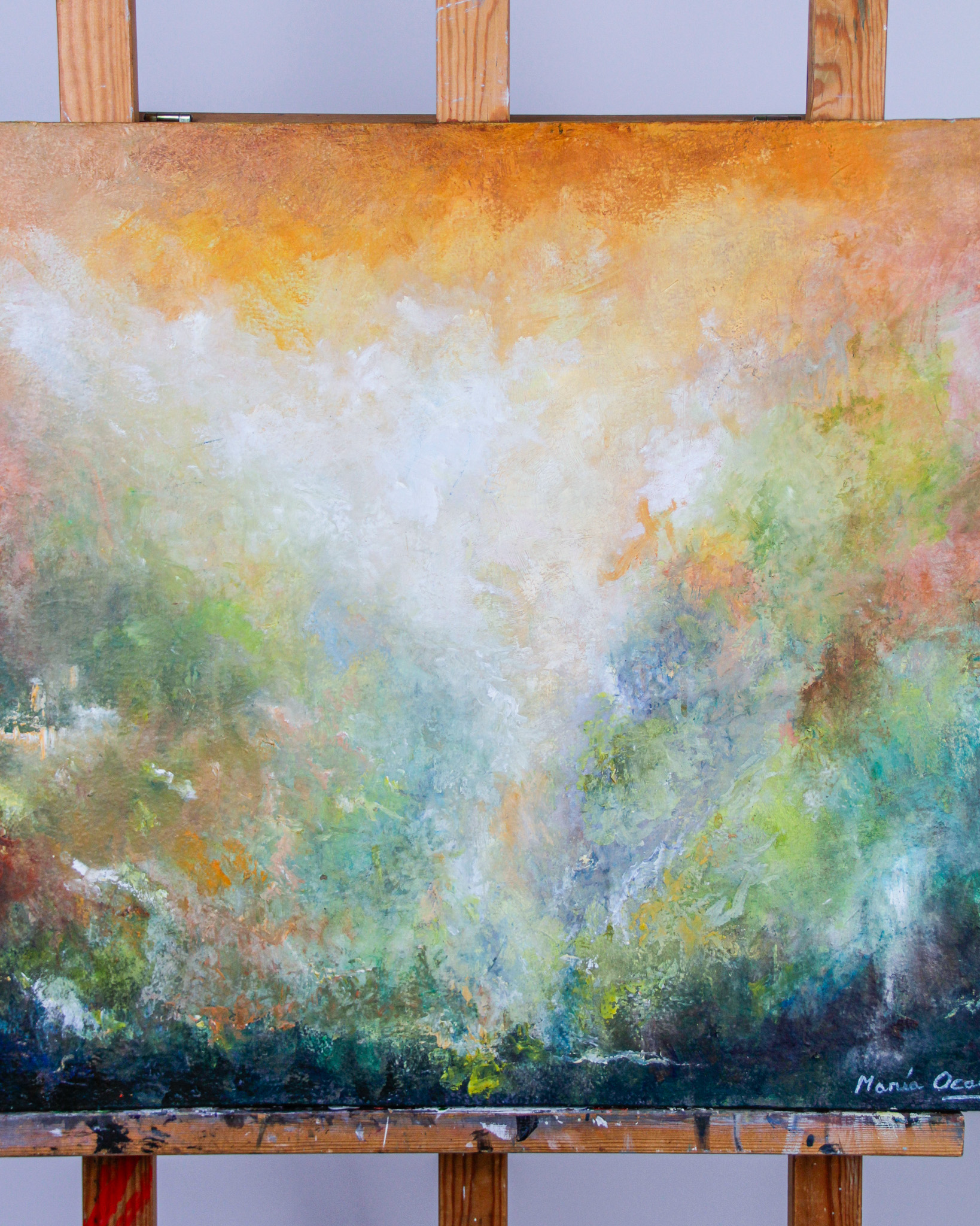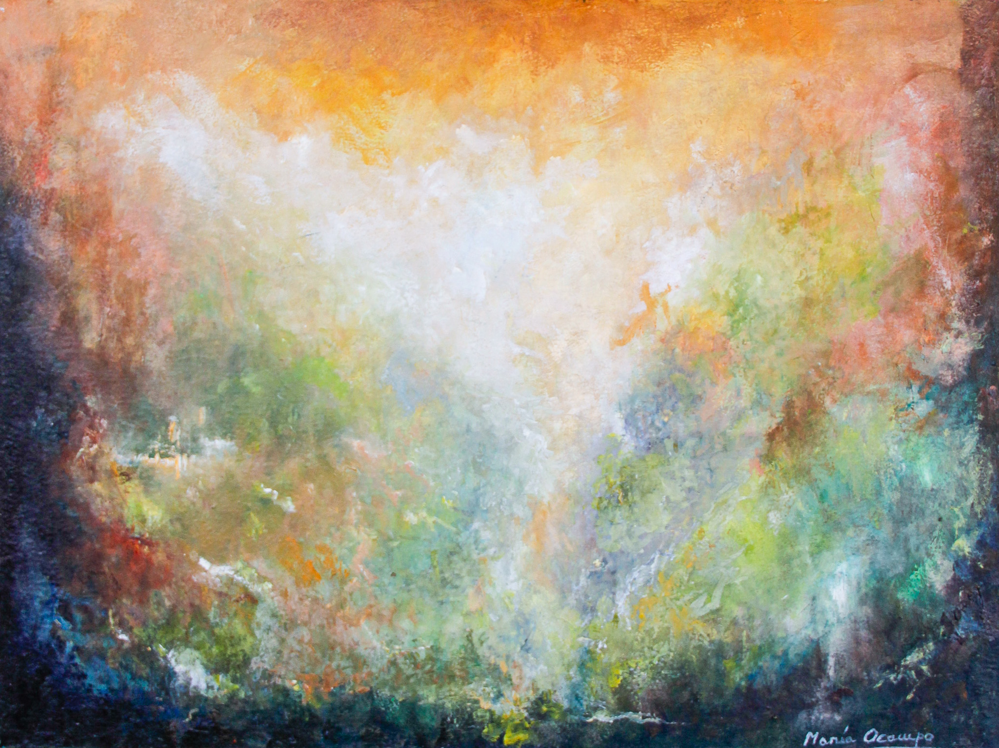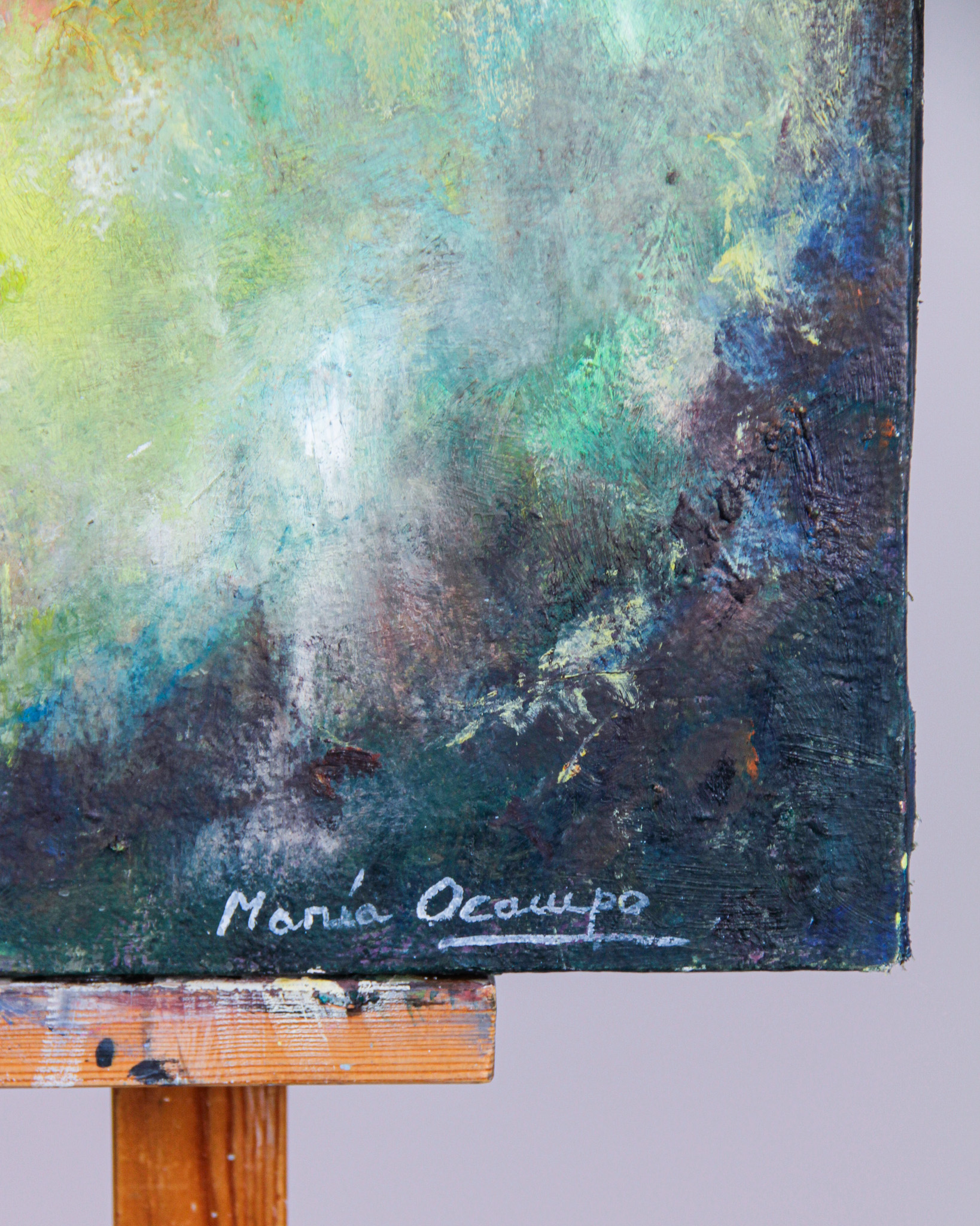 Olja på duk, abstrakt komposition, Maria Ocampo, signerad