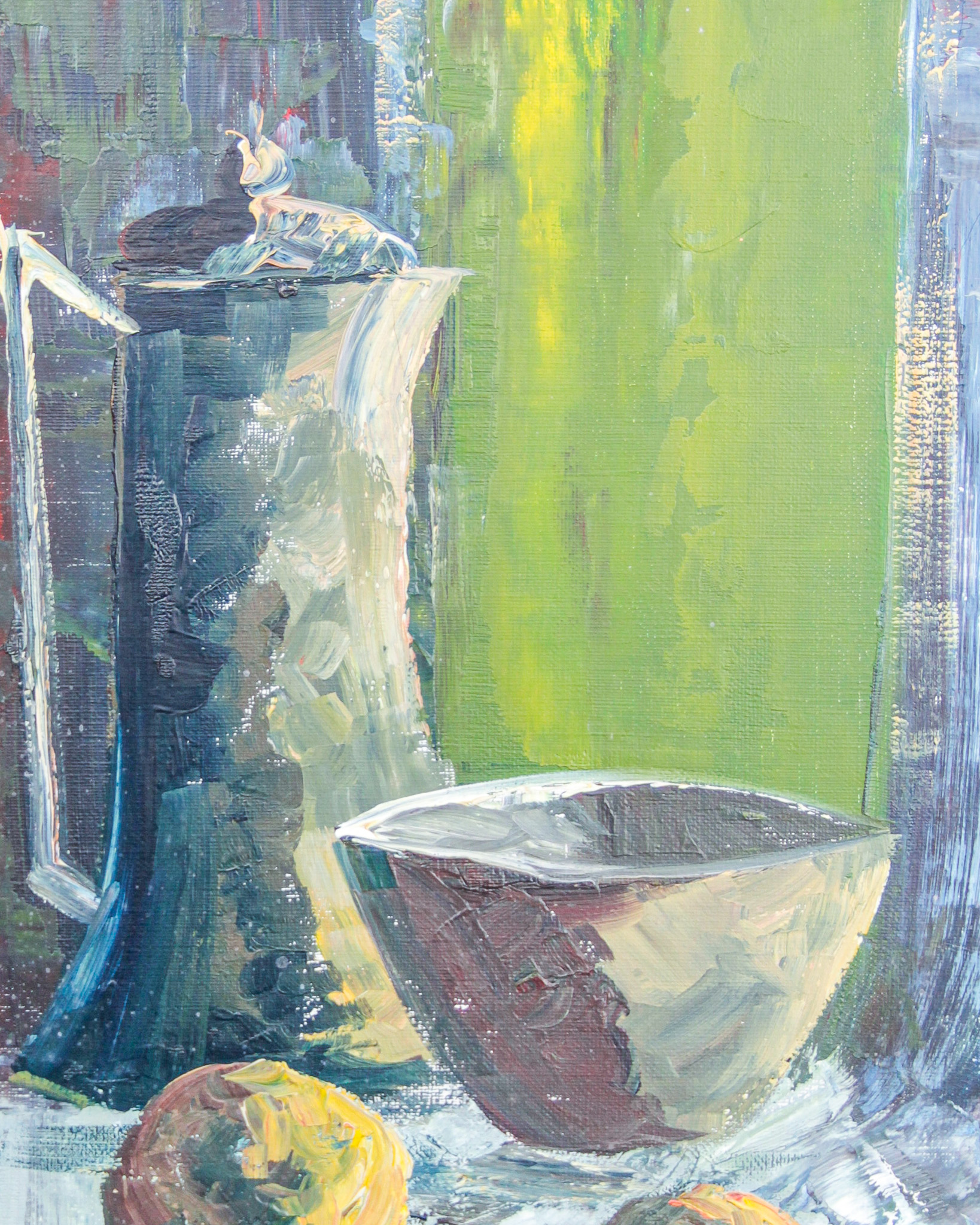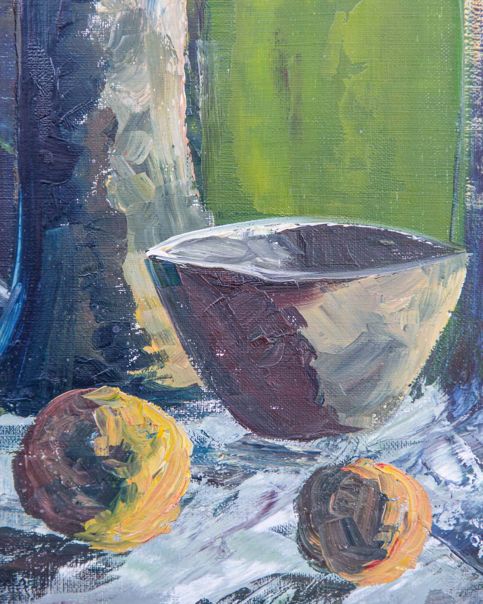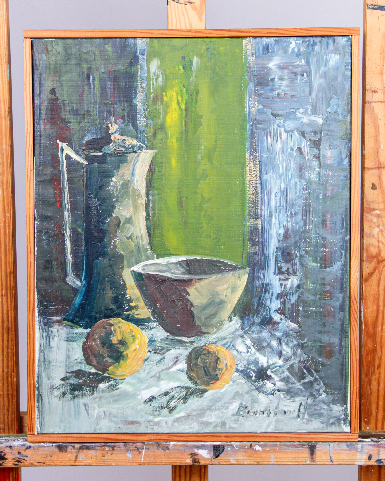 Olja på duk, stilleben, oidentifierad konstnär, signerad