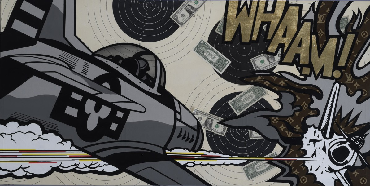 "Staygold", signerad young quality a tergo, blandteknik på duk, bildmått 75x150 cm