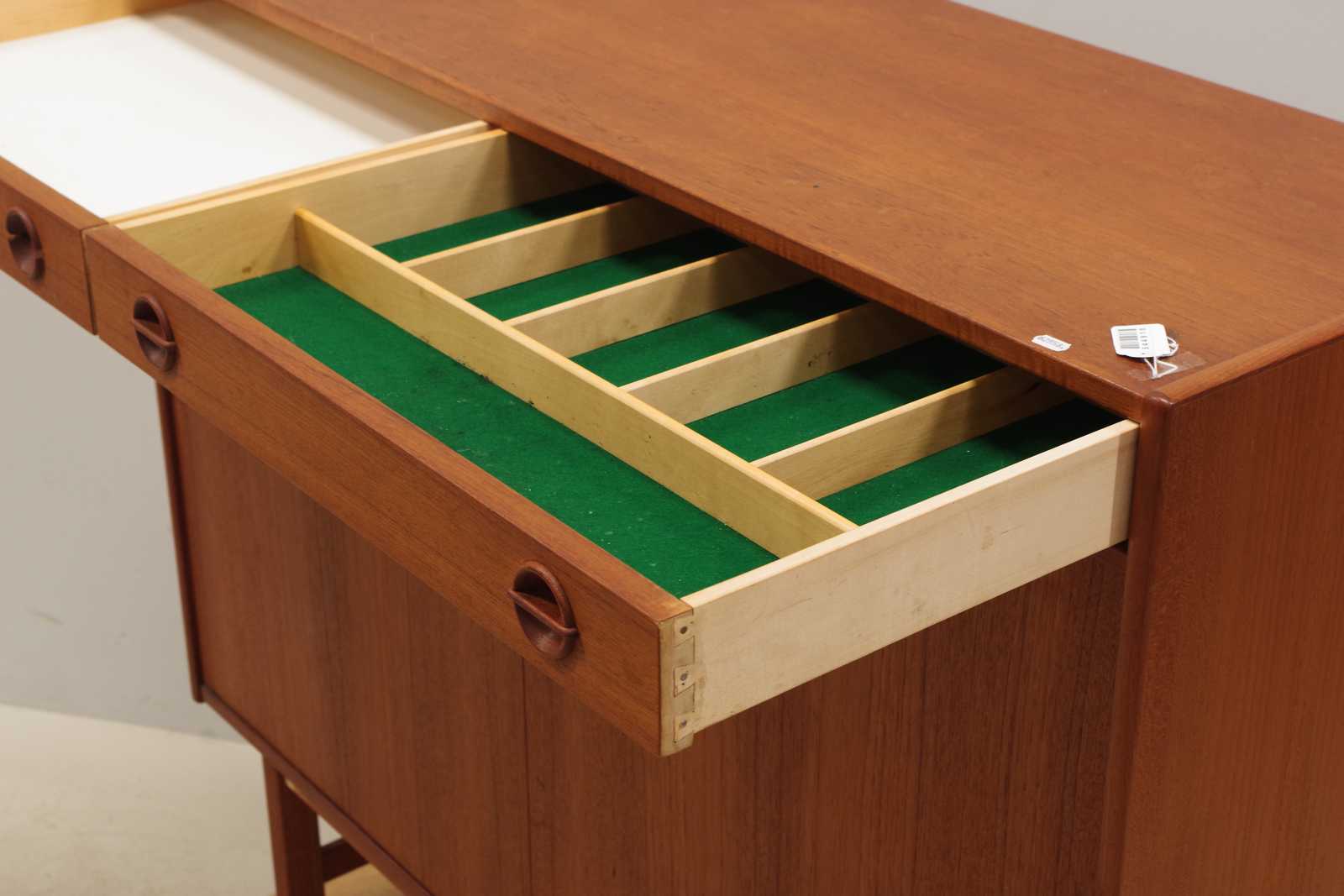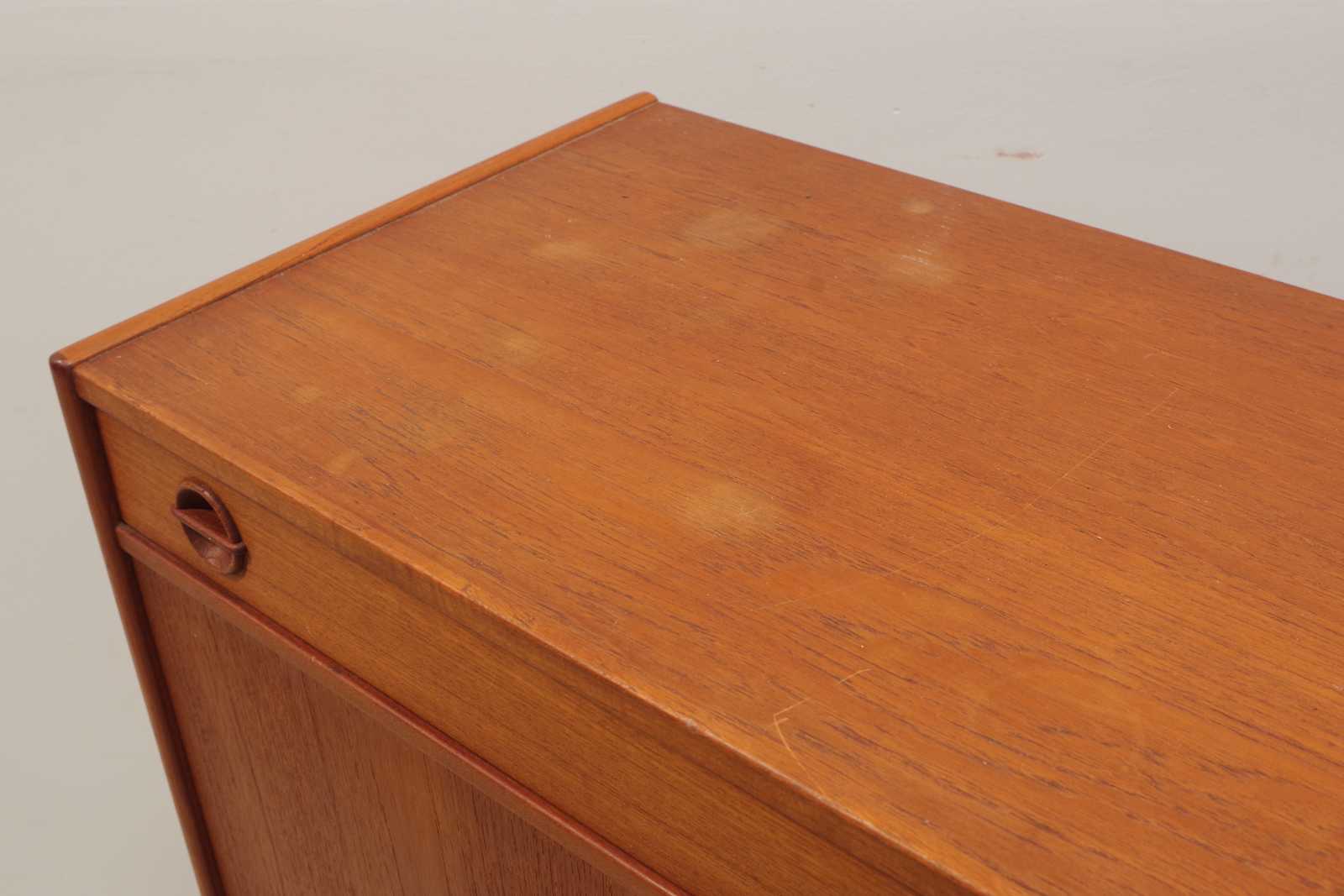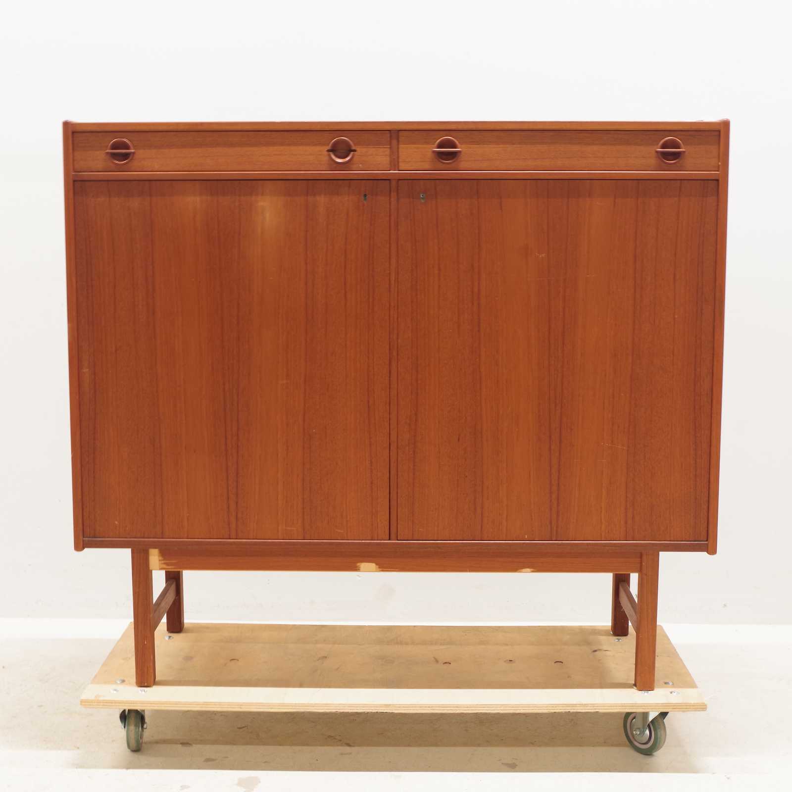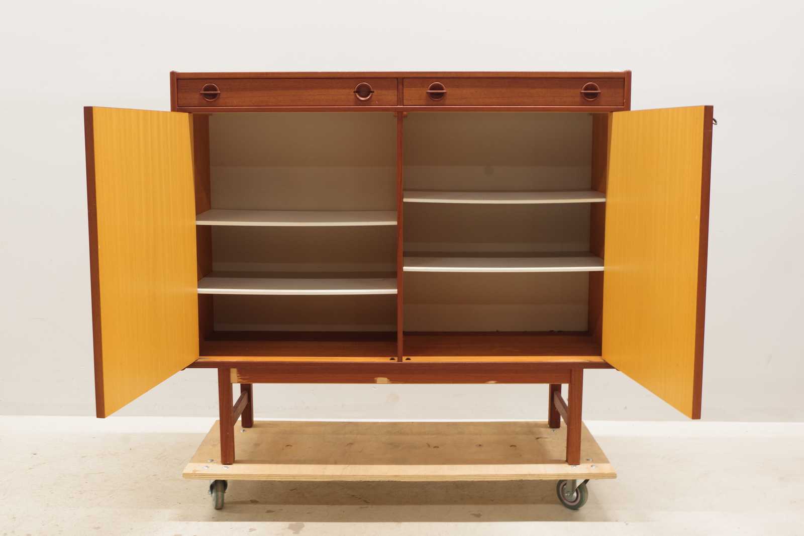 Bilder SKÄNK Tage Olofsson, Ulferts, fanerat i teak, 1960-tal. H:110x 123x 43cm (mindre fläckar förekommer, fanérskador på underrede, smärre slitage, ett styck handtag till låda saknas)