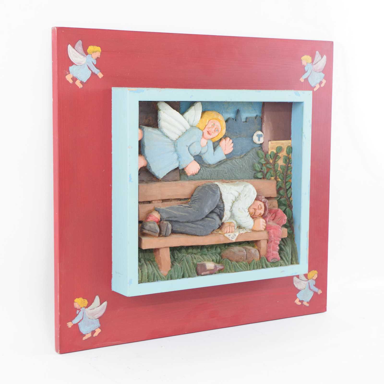Bilder TRÄTAVLA Stig Wallgren, relief. 58x55cm