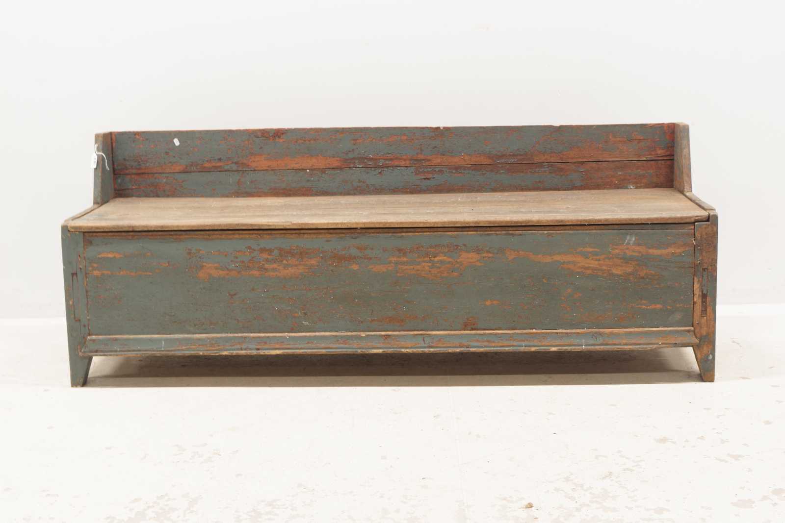 FÅLLBÄNK 1800 tal, senare målning. B:179cm (åldersslitage, ställvis maskstungen)