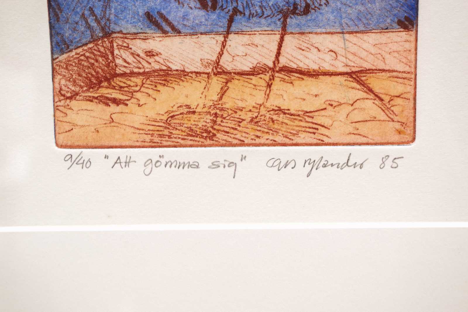 Bilder TAVLA, Lars Rylander, litografi, "Att gömma sig", signerad samt numrerad 9/40. 12x14cm bildmÄtt