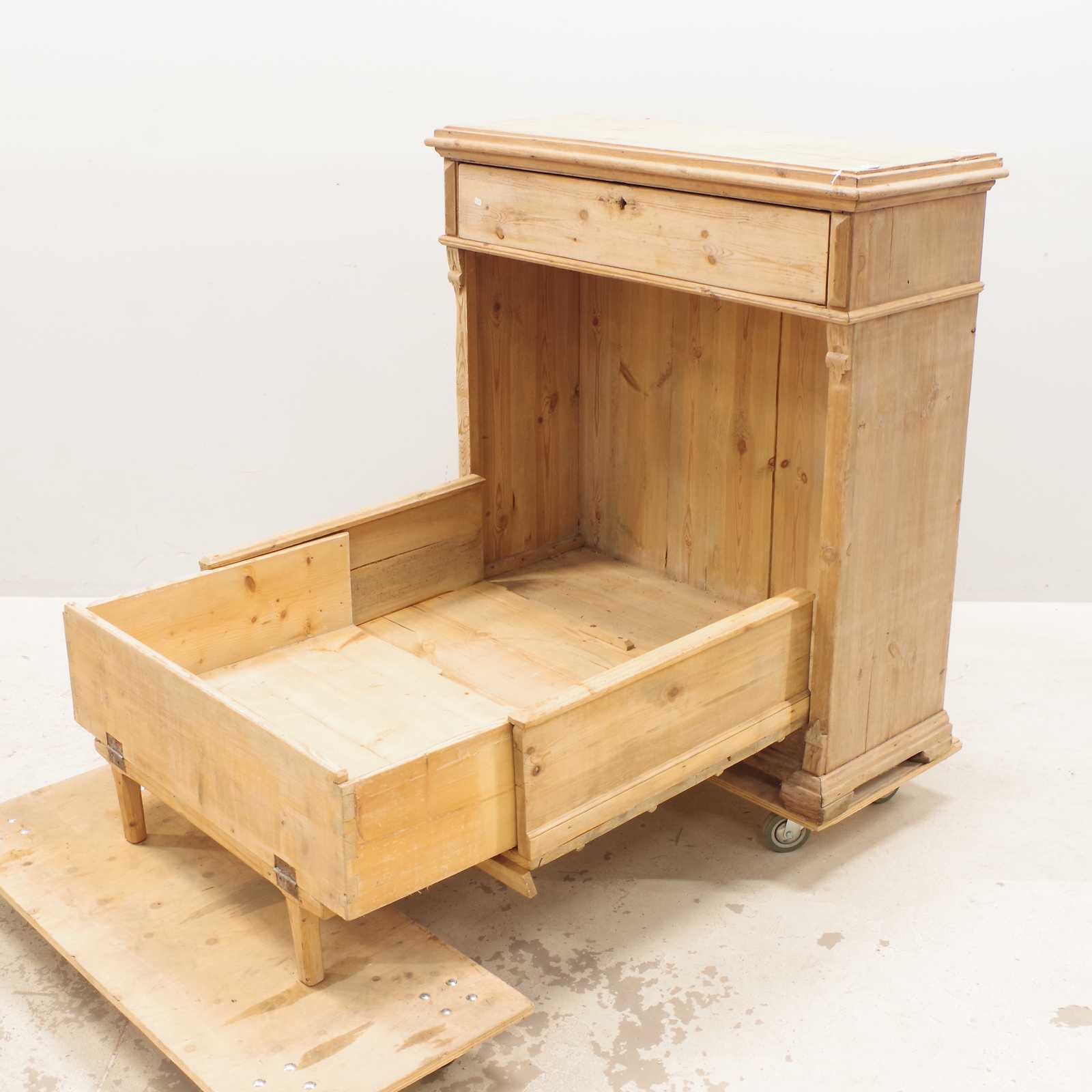 Bilder SÄNGBYRÅ utvikbar till säng, 1800 tal, senare renoverad. H:122x 115x 47 som byrå. B:87 L:ca 170cm som säng (slitage, senare lagningar och renoveringar)